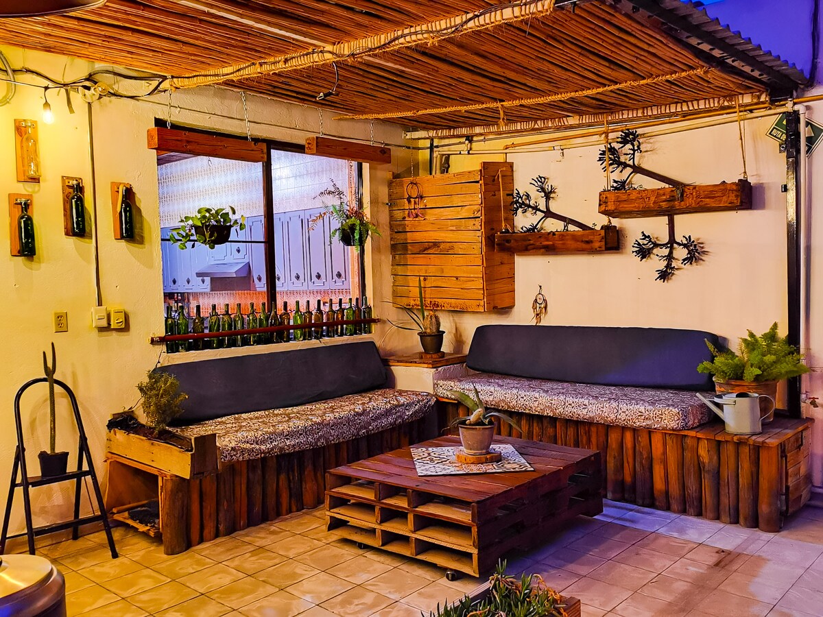Casa céntrica de 1500 m2 amplio patio donde podrás relajarte bajo la sombra de los arboles, preparar y disfrutar alimentos. Vive una experiencia semi campestre, observa el vuelo de aves o mariposa Monarca en otoño. En el interior de la casa encontraras un espacio amplio, calido y confortable donde podrás descansar y convivir con tu familia o amigos. La casa tiene muchas ventanas que si eres gustoso de abrirlas recibirás el viento de los cuatro puntos cardinales.
