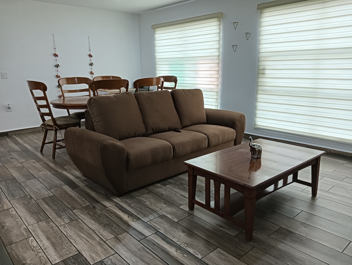 "Beautiful double-ambient accommodation with autonomous access and absolute privacy, workspace, Wi-Fi, kitchenette, and everything needed to prepare meals Excellent location. It's located on an avenue, 20 minutes from AIFA and Cuautitlán suburban train, with public transportation right at the doorstep Suitable for up to 4 people (using the sofa bed). The accommodation is on the third floor of an apartment building. We'll be delighted to welcome you and offer a comfortable and peaceful stay