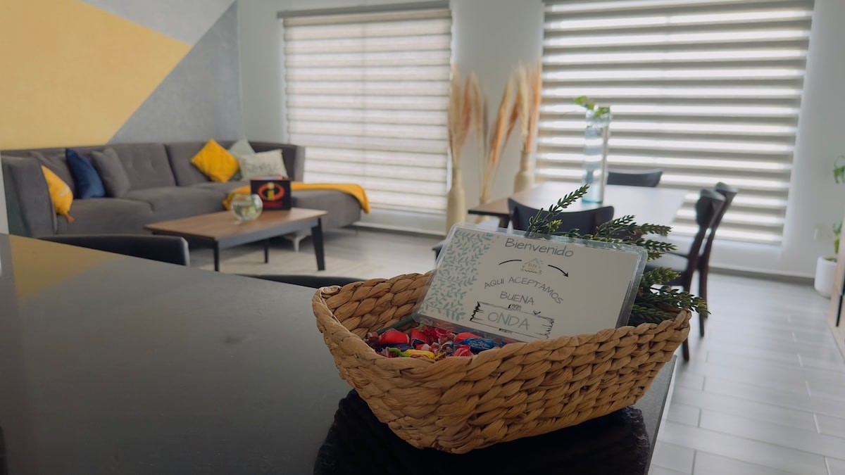 Disfruta de una experiencia con estilo en este alojamiento céntrico, limpio, espacioso, bonito y sobre todo acogedor, disfrutaras de un lugar tranquilo para trabajar o descansar. A tan solo 5 min de plaza San Marcos, a 10 min de Plaza San Miguel, a 10 min de Ford, 10 min de la zona industrial de cuautitlan Izcalli, a 18 min de San Martin ovispo y a 30 min de Madeiras Country Club. A menos de 3 min se encuentran 2 tiendas, 1 cafe internet, 1 farmacia, 1 sitio de taxis y Fondas de comida.