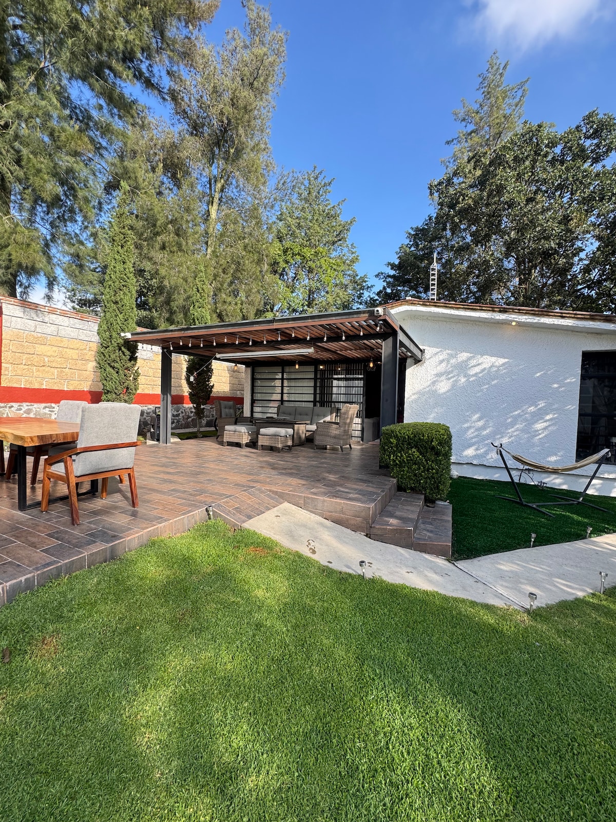 Hermosa casa de campo con amplio jardín privado, ideal espacio de esparcimiento y relajación para pasar unos días en compañía de tus seres queridos. Ven a disfrutar del bienestar y la tranquilidad que te ofrece la naturaleza. Ideal para ejecutivos, convivir en familia, pareja, realizar una cena, o arreglar a una quinceañera o novia, después de un plácido descanso. Jardín con bonita iluminación. Internet de fibra óptica, net flix, max, you tube premium en una TV Puedo facturar tu estancia.
