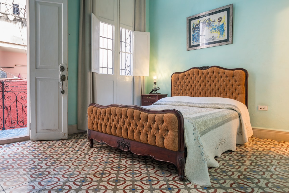 Welcome to to the Travelers Bedroom in Casa Pompei ! This stylish boutique hotel is located in the center of Havana. You're within walking distance of every important landmark in the city! It is only 20 minutes from the airport and we arrange classic car pick-ups for our guests! Every room has private terraces, a rooftop with 360 views, on-site laundry service, and a kitchen & dining room to enjoy your coffee in the middle of Havana! We look forward to welcoming your stay here!