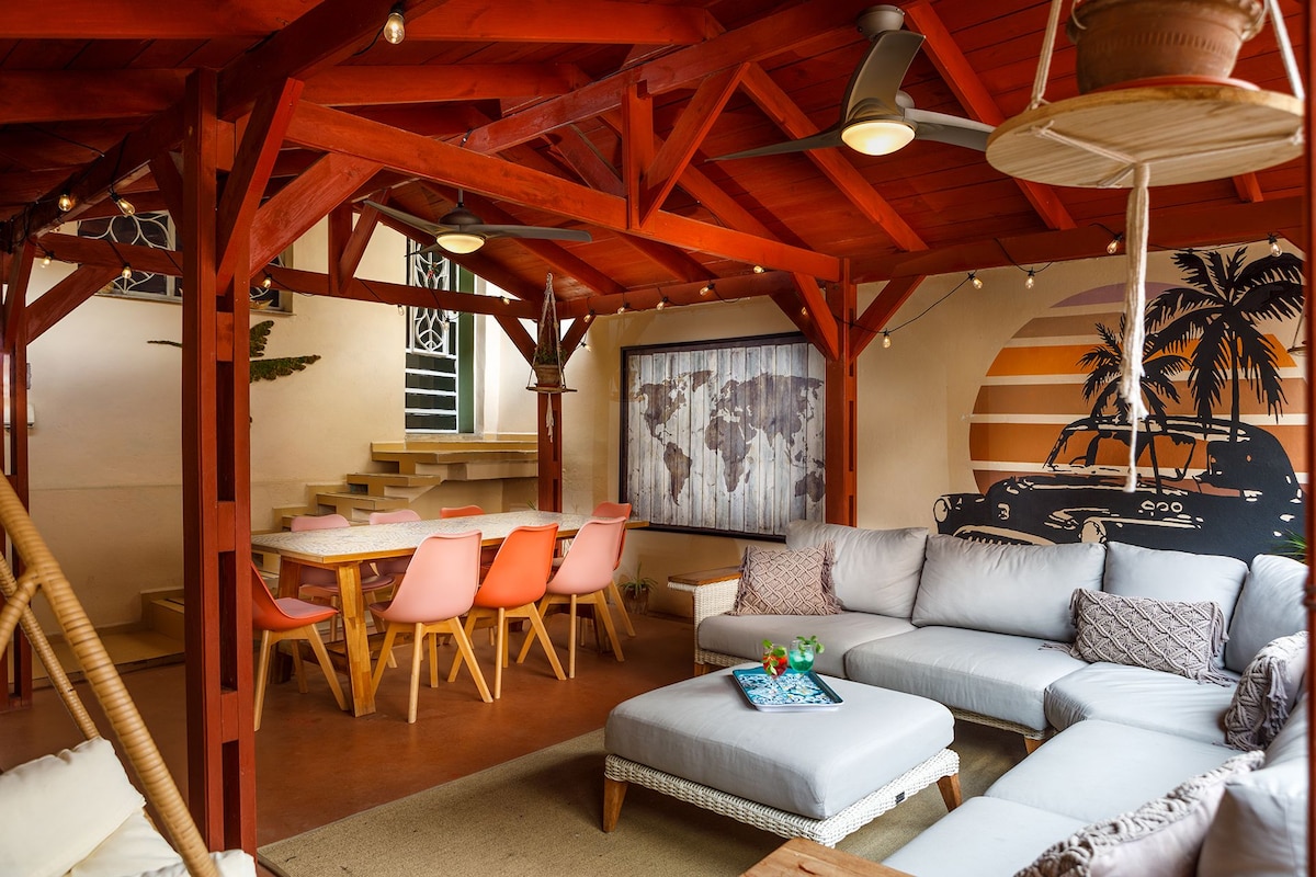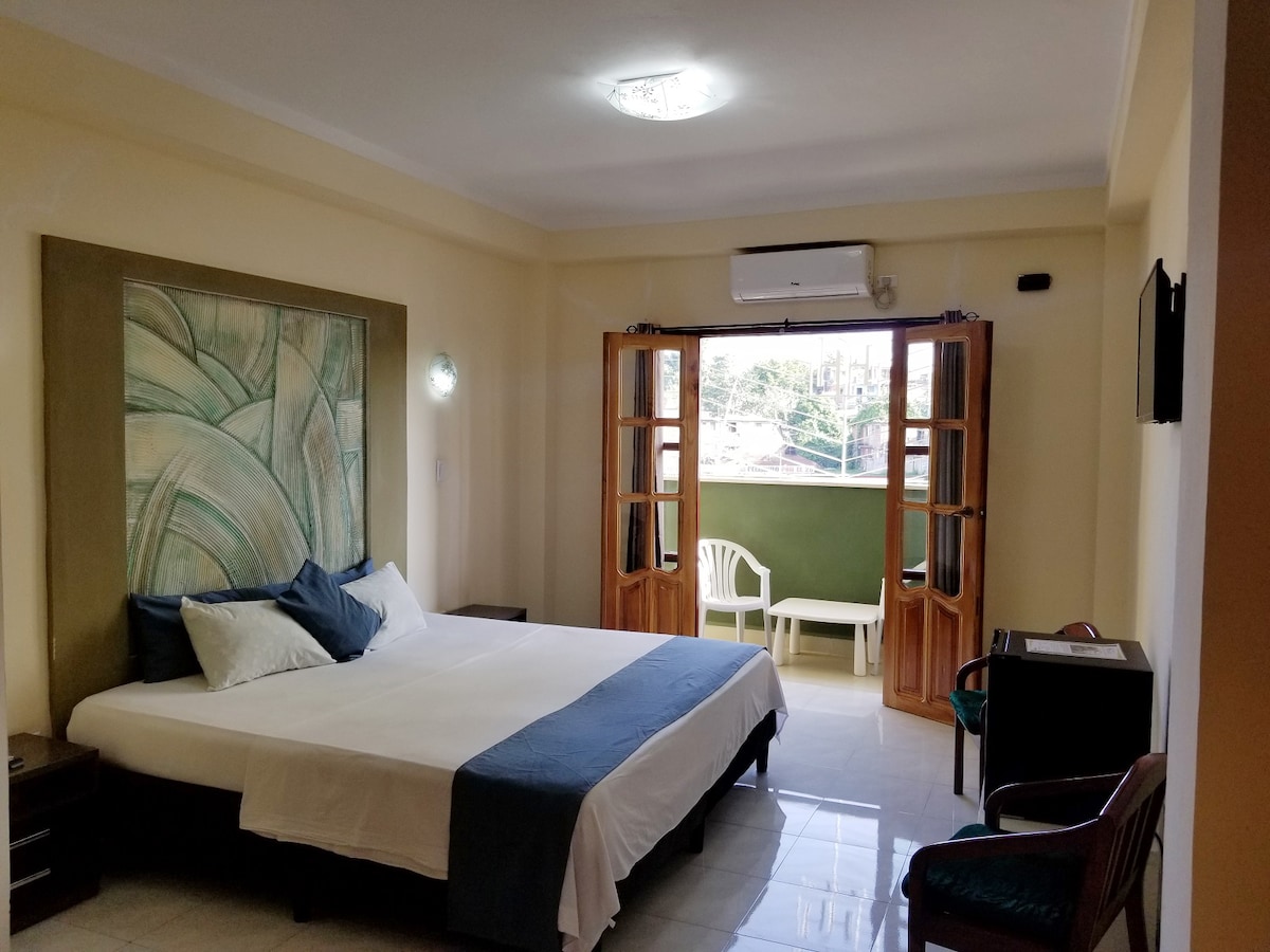 Hostal Boutique situado en el corazón del centro de Santiago de Cuba a solo 50 metros de la Plaza de Marte Construcción con un aspecto imponente que combinado con la calidad del servicio la convierte en un lugar ideal para disfruta de un alto estándar dentro del mismo centro de la ciudad. 6 habitaciones muy amplias (38m²) y ventiladas, cada una cuenta con balcón, baño privado, y muy bien equipadas . También tenemos generador eléctrico propio en caso de cortes eléctrico.