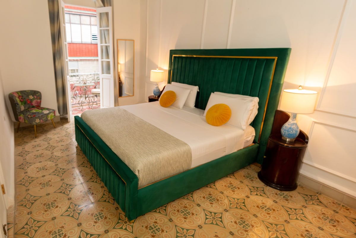 Our bright Junior Suite showcases the eclectic architecture of the 1920's and the charm of an artistically restored building. Located on the 2nd floor, our spacious Junior has a living room, three private balconies, cozy queen bed, private bathroom, original tiles Cubans, collected period objects and works of art originals. Our Rooftop and terraces welcome people but also offer a moment to slow down and meditate