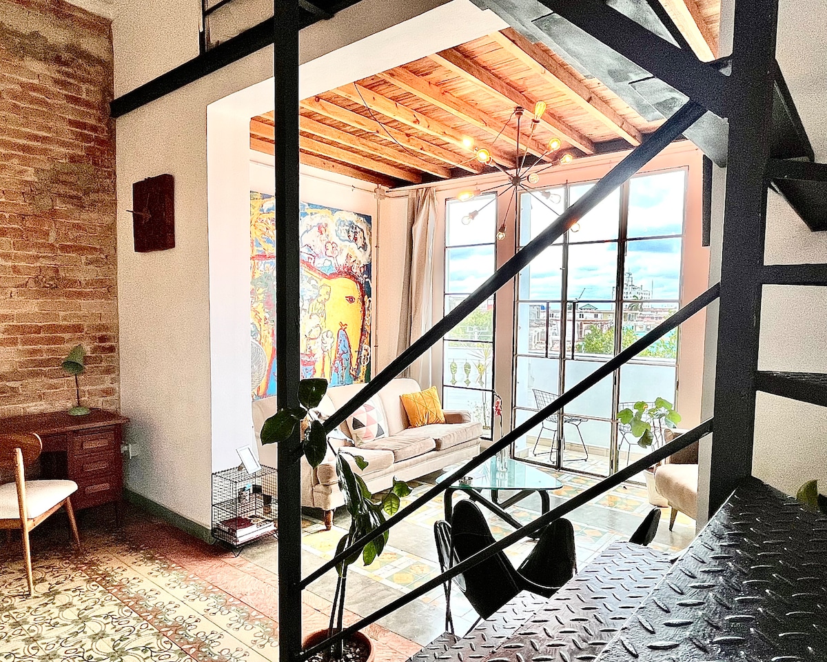 Our beautiful loft stands on the top floor of a Neo-Classical building at the heart of hip artistic Vedado, within steps of trendy restaurants, entertainment nightspots, Hotel Nacional, Malecón, and 5-min drive to Old Havana. Designed around a contemporary interpretation of colonial architecture, the 5m-high open space features mezzanine levels stretching from one side of the apt to the other, and large rooftop terraces with dining/lounging areas offering breathtaking views of Havana.