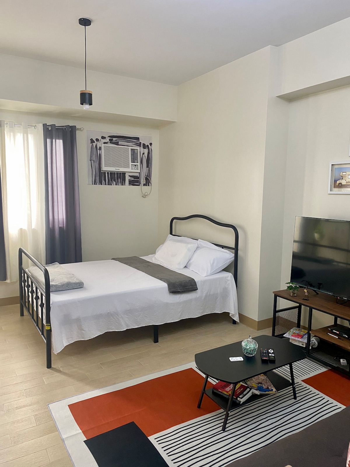 Imagine your 5 minute walk home from a concert at Araneta Coliseum or New Frontier Theatre. Art in Island, Bellini's, Habanero Cubao Expo are definitely walkable distance from the condo. Get your seafood fix at Dampa after a swim in the pool or shopping at Gateway Mall. Equipped with both task and mood lighting, the unit is great for work from home and staycations. The stay includes same building access to parking, pool, gym, billiard table, jogging trail, basketball court and 24/7 security.