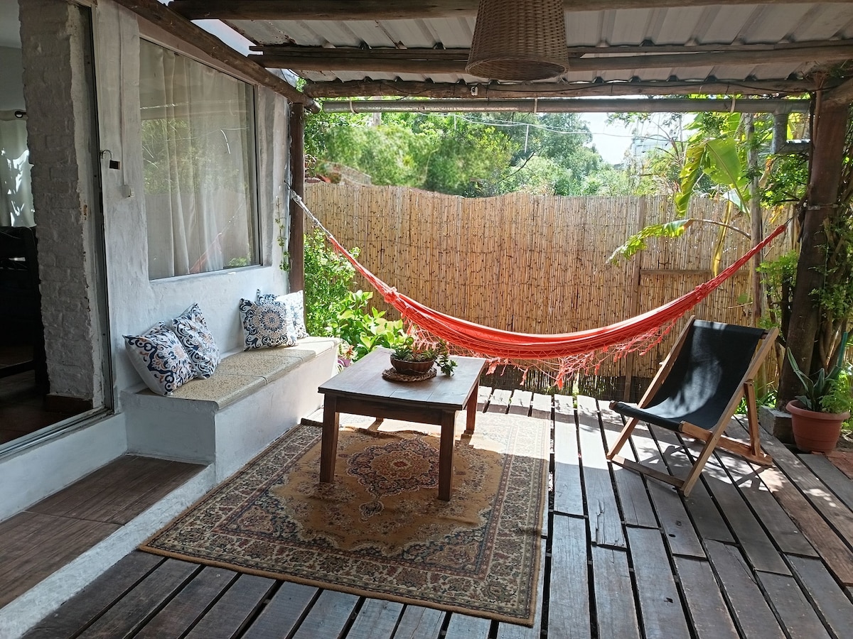 Desconecta de la rutina en este alojamiento único y relajante. Casa pequeña, en un entorno excelente a cuatro cuadras de una playa espectacular. Cuenta con un espacioso deck, jardín, parrillero, espacio techado para auto. Posee un dormitorio con vestidor de gran espacio de almacenamiento. La cocina está integrada al living, donde hay un sillón cama. Admite un máximo de tres personas, sin excepciones. No se admiten mascotas.