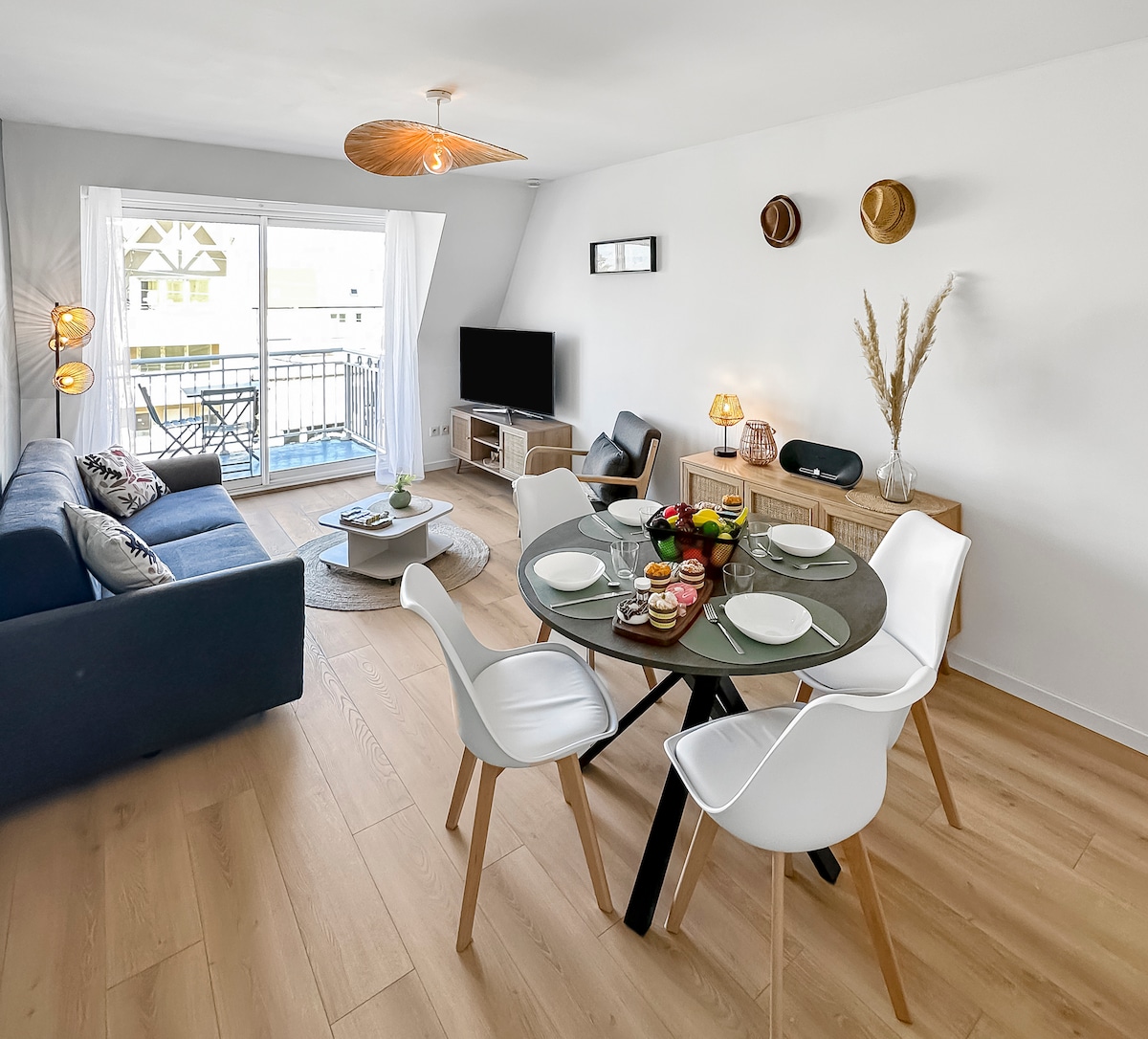 Idéalement situé entre place du Marché et plage, notre appartement dispose de 2 chambres pouvant accueillir 6 personnes et d'un grand balcon-terrasse avec vue mer et sur la place du Marché. Un emplacement de parking fermé est à votre disposition. Pour un séjour des plus tranquilles, bénéficiez dun accueil en toute sérénité. Je m'engage à respecter les mesures sanitaires en vigueur pour assurer votre sécurité et votre bien-être.
