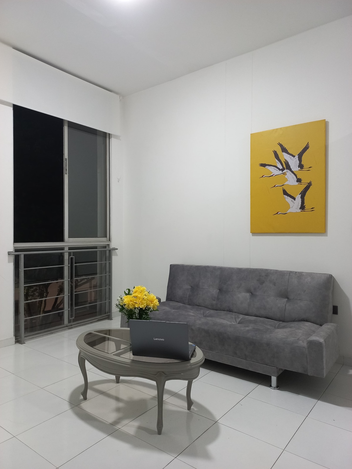 Comodo apartamento ubicado en el séptimo piso de un conjunto residencial, diseñado para tú comodidad. Habitación principal con cama doble, aire acondicionado, TV y baño privado. segunda habitación con cama doble y una tercera habitación con cama individual, en la Sala encontrarás un sofá-cama. Cocina equipada con lo necesario para tú estadía, zona de ropa con lavadora -secadora. Parqueadero privado (para automóvil) Situado en una zona estratégica de la ciudad.