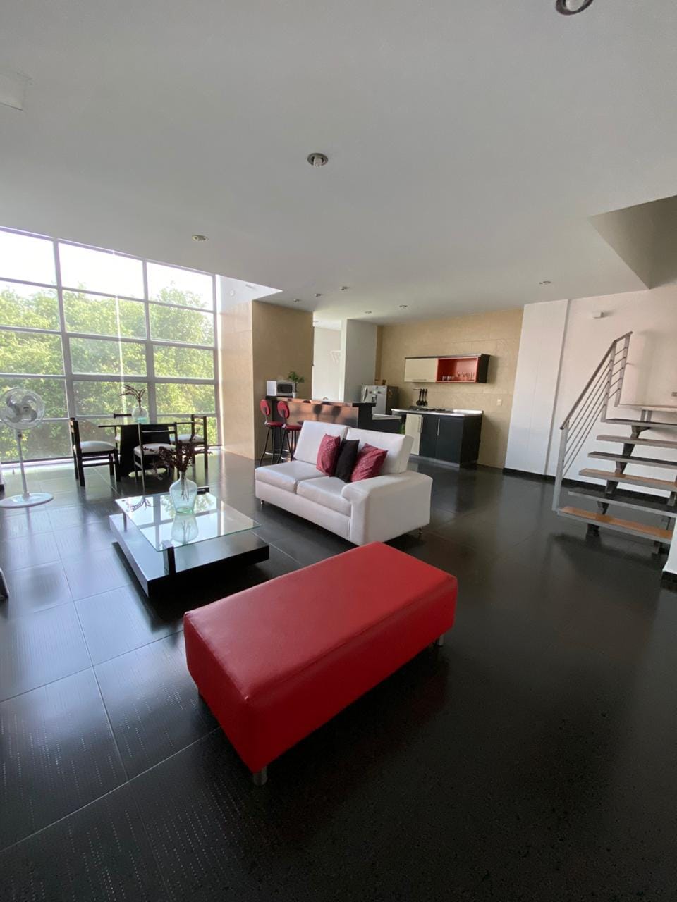 This elegant accommodation is ideal for group trips or enjoying a very private place with excellent finishes as a couple. With an excellent location close to 24 hours Market and pharmacy,with large spaces with a swimming pool, office, recreation areas and parking for two cars. All this space is distributed over two floors and a third floor with a terrace and private room. It has 4 rooms, all with air conditioning, with very comfortable double beds and two auxiliary rooms with single beds.