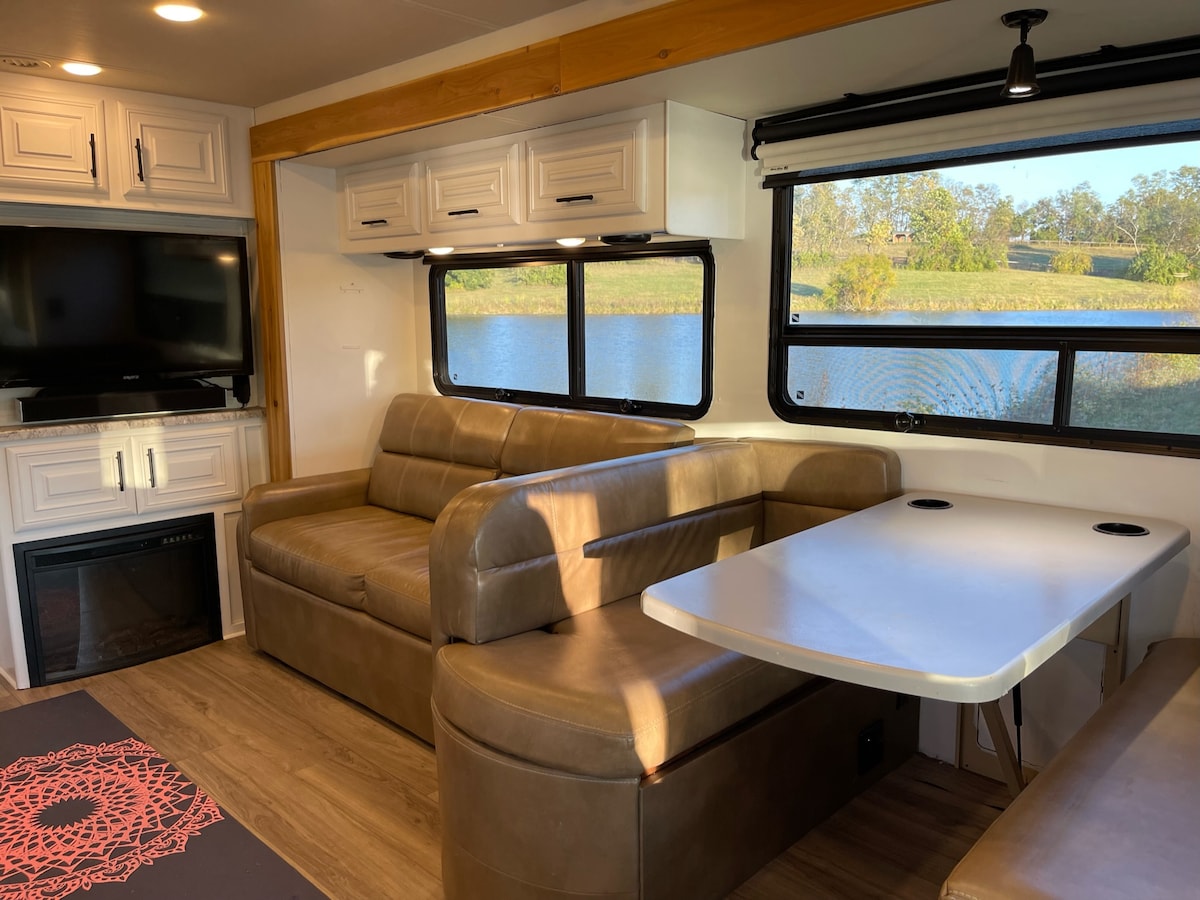 The ultimate escape from the mainland to relax and reload while enjoying the comforts of home. Enjoy the sun and sea and at night relax at your new 35ft fifth wheel with all the amenities of home. Two bedrooms and two baths with a full modern kitchen. Reclining chairs and HD tv's. Great WIFI to stream your favorite shows or game. Great central air conditioning and modern appliances. BBQ grills on grounds and a beautiful beach for nightly sunsets.