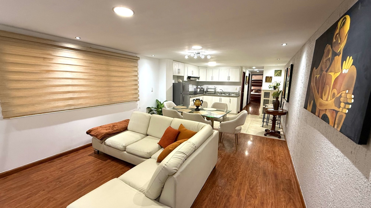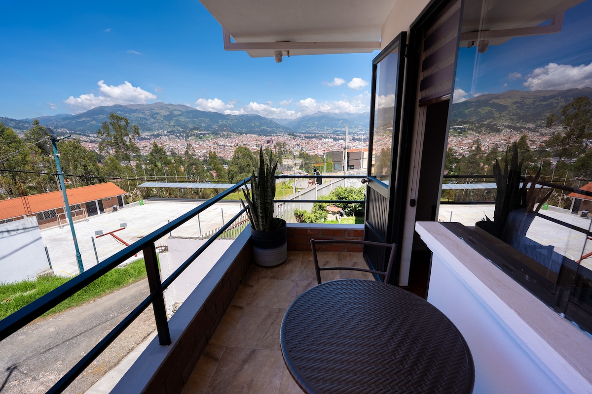 Beautiful apartment ideal for 4 people, in the heart of Cuenca, with an impressive Rooftop with views of the city. Located next to a rooftop cafe, easily accessible, and a bar in the first floor. It has 2 bedrooms, a living room, equipped Kitchen, dining room, 1 bathroom, laundry room. Steps from Churches, restaurants, museums, and more attractions, This property is perfect for families or groups looking for a convenient and a prime location.