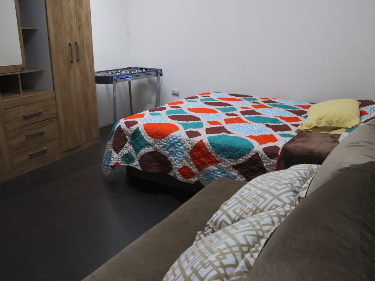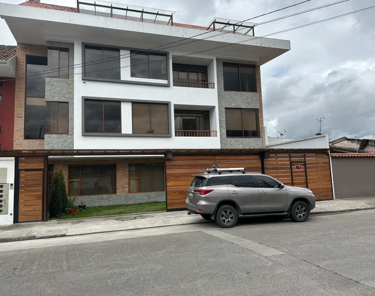 Relajese con toda su familia en este departamento tranquilo. Departamento espacioso de dos pisos. Cuenta con Jacuzzi, y se encuetra dentro de un condominio privado con buena seguridad y sobretodo un ambiente muy tranquilo. En el area encontraras restaurantes, mini marquetas, farmacias, ect. Estamos a 15 minutos del centro historico de Cuenca y zonas turísticas. ⭐NOTA: Tenga en cuenta que el precio por noche depende de la cantidad de huéspedes. Niños menores de 2 años no pagan.