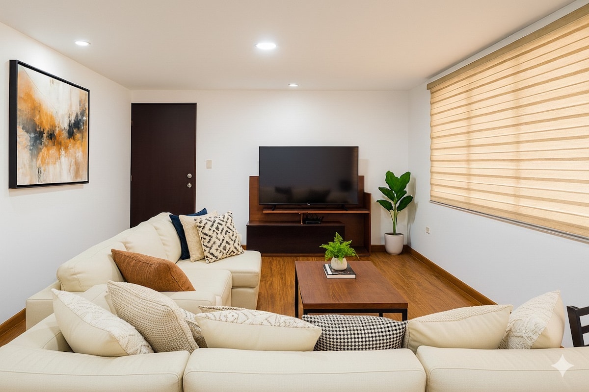 Disfruta Cuenca desde este moderno departamento a estrenar, ubicado en un edificio nuevo, seguro y tranquilo. A solo 5 minutos del Centro Histórico, ofrece una excelente vista de la ciudad, espacios luminosos, 2 habitaciones, 2 baños completos, sala con sofá cama y terrazas. Ideal para descansar o trabajar con comodidad. WiFi rápido, cocina equipada y parqueadero incluidos.