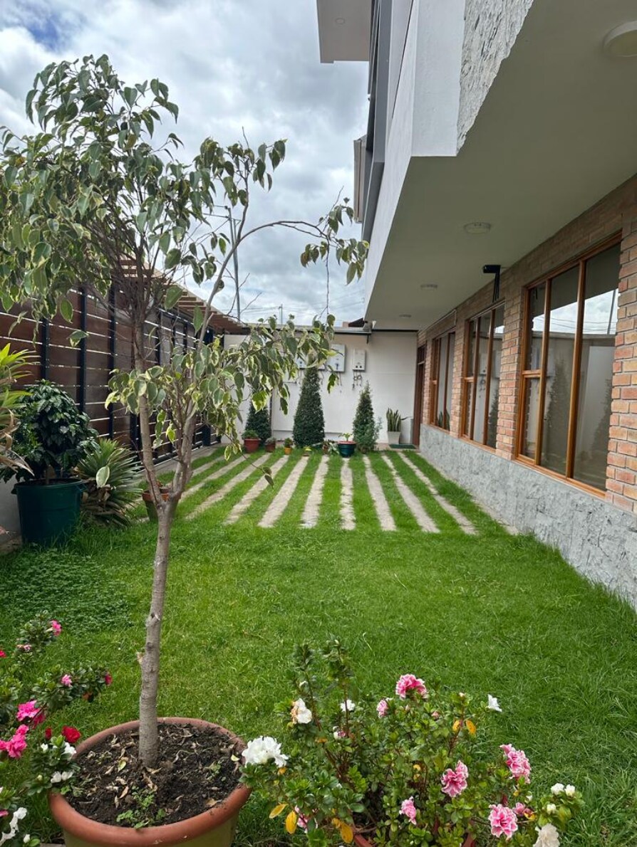 Acogedor departamento familiar independiente en zona segura, con parque y áreas deportivas justo al frente. A solo 2 min de la moderna Plaza WAYRA a 15 min del centro y cerca de tiendas, restaurantes y zona comercial. Cuenta con 2 dormitorios, baño amplio, sala, comedor y cocina completa. Buses frente a la casa y hospitales como SOLCA, IESS y Regional a poca distancia. Ideal para estancias cómodas. Para grupos grandes hay otro departamento en el 1er piso disponible.