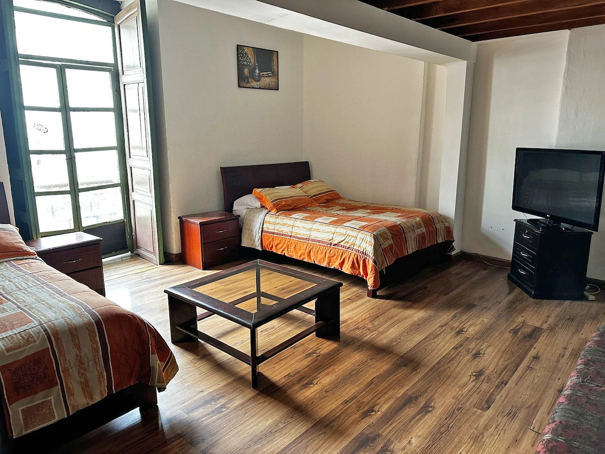 Hermosa habitación con baño compartido ubicada en el Hostal Aida Luz, en pleno centro histórico de Cuenca, a solo una cuadra del Parque Calderón y de la icónica catedral.