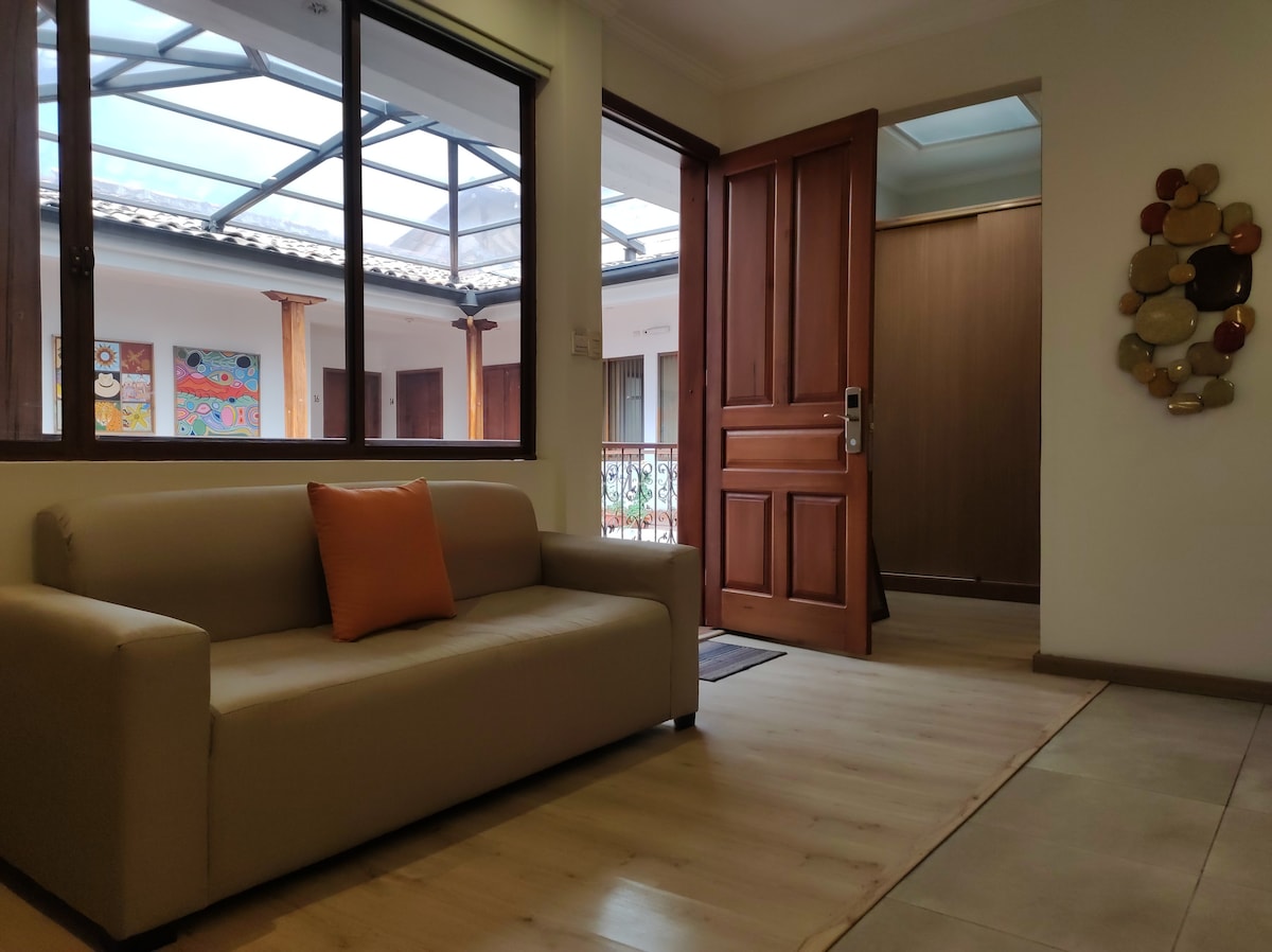 100% private, bright & independent suites. Big parking lot & storage available. Extra "bed" with fresh sheets/towels after 2nd guest, electric water heaters. You won't find a better location/view in Cuenca. We are at the heart of the historical city center where all gastronomic & tourist attractions are (club a block away). Seconds away from the city's Central Park Calderon, where bus and walking tours begin, and from our most precious jewels, the Blue-Domed & the Old Cathedral, welcome home! :)