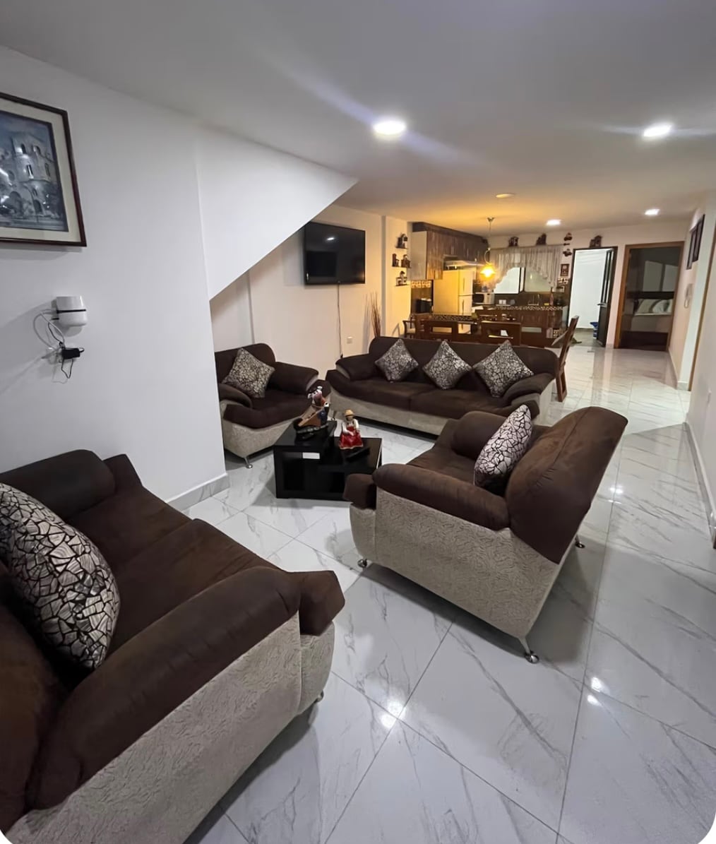 Este elegante alojamiento es ideal para viajes en grupo o familias que deseen tener un gran espacio, con los últimos dispositivos en tecnología para su uso, contamos con: televisor principal de 85 pulgadas, refrigeradora inteligente, lavadora, secadora, todo tipo de electrodomésticos para cocinar 5 habitaciones con su propio baño cada uno y equipados con todo y sofácama Hermosas vistas de la parroquia Ricaurte, una de las parroquias más tranquilas de Cuenca Parqueadero privado para 2-3 carros