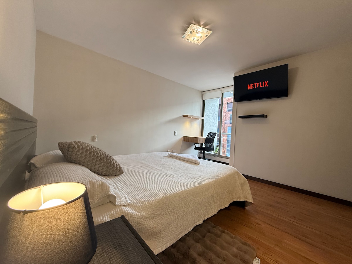 Acogedor departamento en Cuenca con excelente ubicación. Se encuentra en un edificio con seguridad 24/7 a pocos metros del centro comercial El Batan, junto al coliseo y a busetas de transporte interprovincial en la Av. Remigio Crespo. Estamos a 5 minutos del centro histórico. El espacio cuenta con: - 2 habitaciones con camas de 2 1/2 plazas. - 1 sofá cama para niño - 1 baño completo - 1 parqueadero - cocina moderna totalmente equipada - lavadora y secadora -internet - 2 smart tv