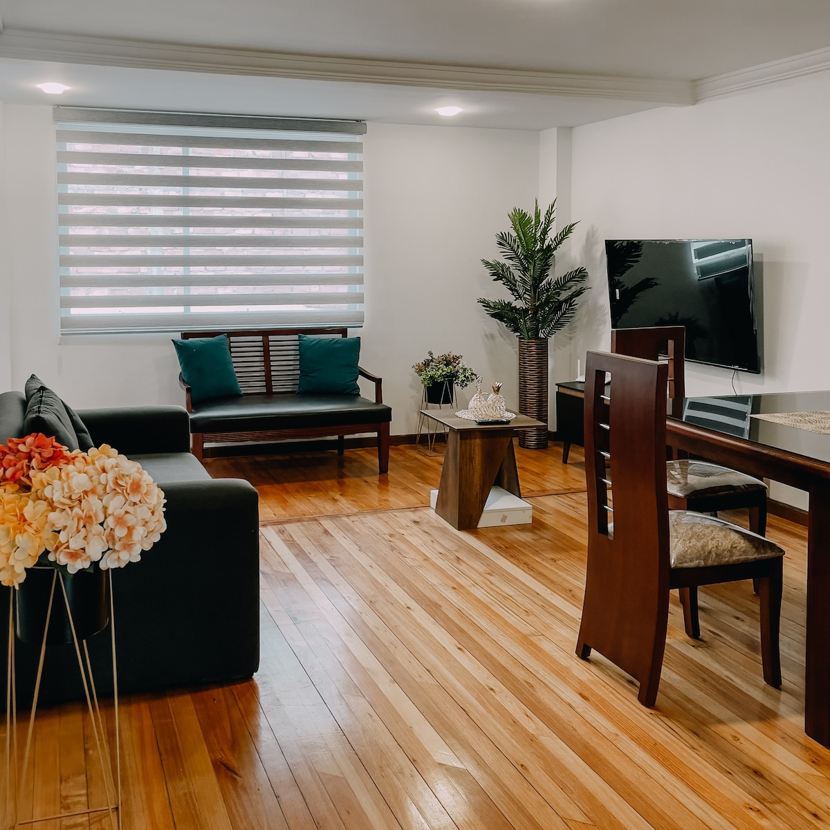 Enjoy this cozy 65 m² suite in a private gated community. It features a bedroom (double + single bed), living room with sofa bed, bathroom, fully equipped kitchen, and WiFi. 🐶 1 pet allowed (up to 20 kg, non-exotic) 🪴 Spacious terrace and garden 🧺 Laundry area 🚗 Free, secure, well-lit parking 📺 Smart TV with Netflix 👶 Baby crib available 📍 Minutes from Cuenca’s historic center, bus station, tram, shops, and restaurants