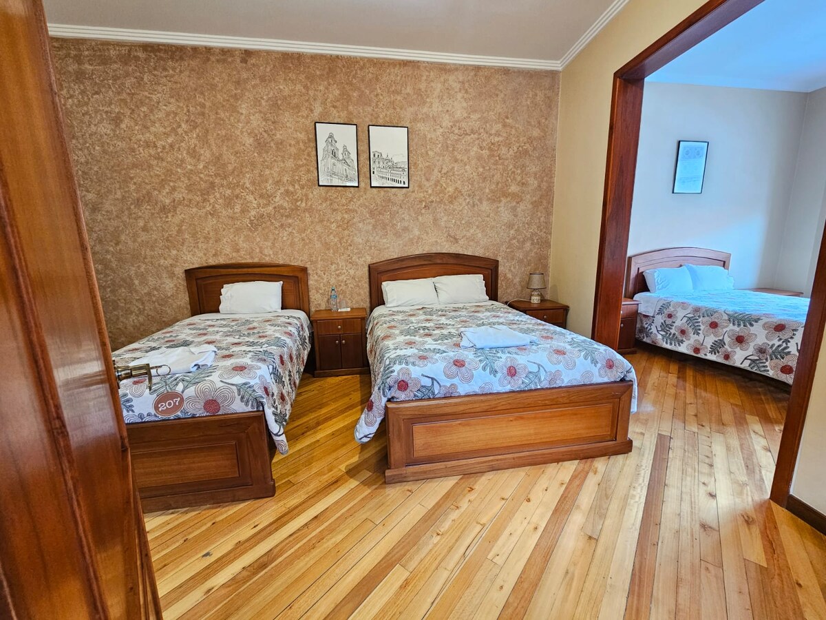 ✨ Experience Cuenca like never before — stay in a traditional colonial home in the heart of the Historic Center. Enjoy natural light, a glass-covered patio, and a peaceful back garden. This unique space combines comfort, charm, and unbeatable location. 📆 Book now and live the magic of a World Heritage city!