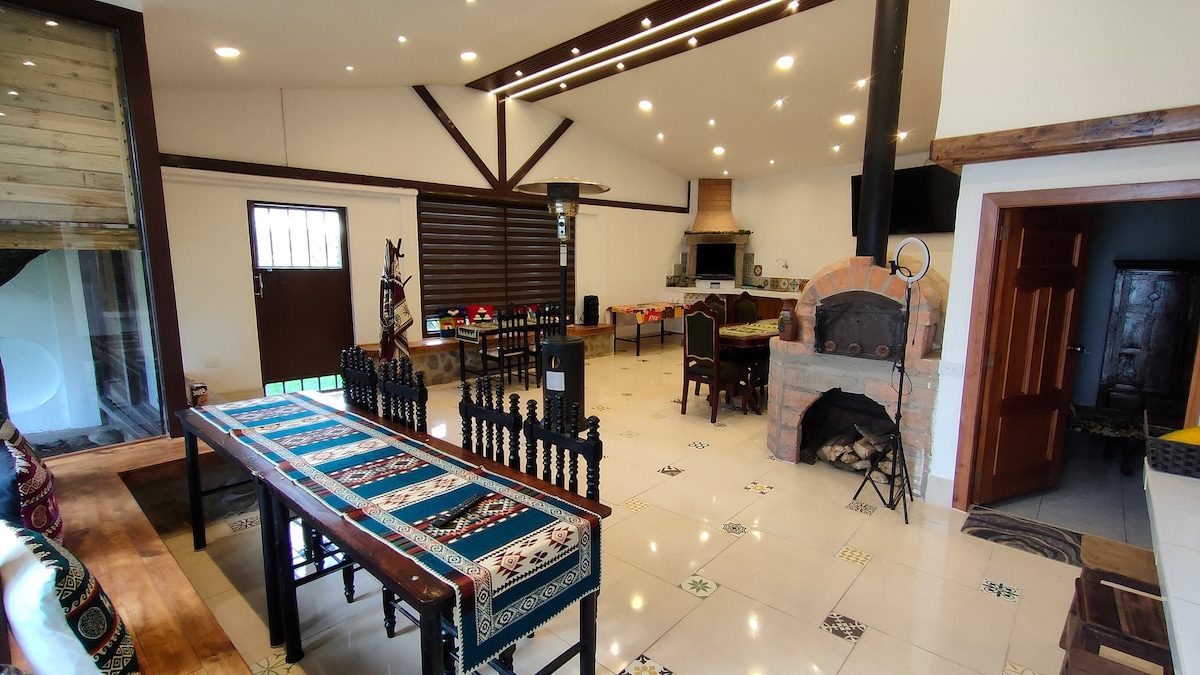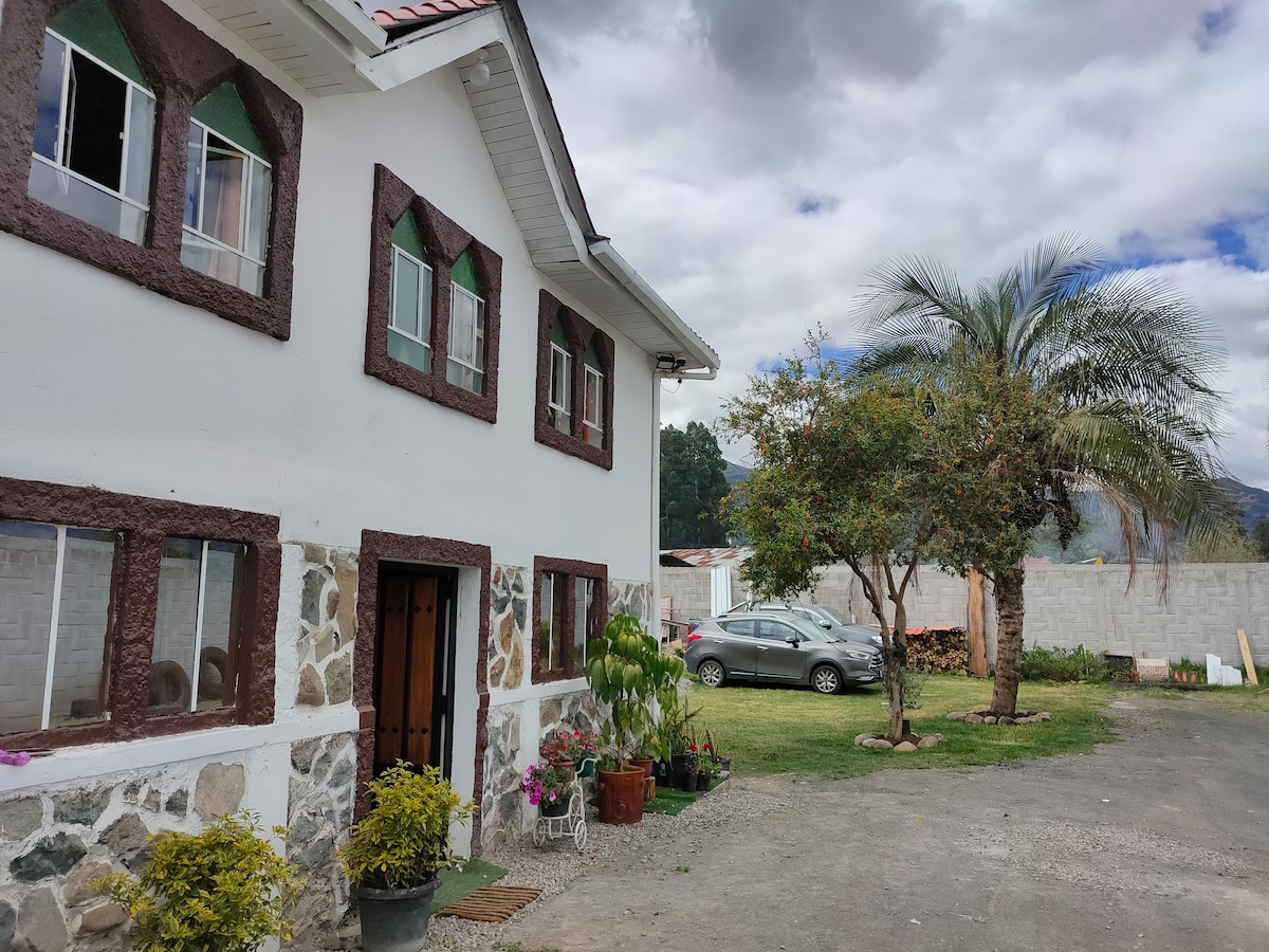 Quiet Location, 4 bedrooms and 3 1/2 bathrooms- new finishes and furniture is located at 10 min from the Historic Center of Cuenca City (Parque Calderon); Large spaces, furniture, rustic and modern finishes, frontal/sides and large back yard. Parking/Alarm/security cameras/Internet and Cable TV, pool table, fire pit and outside barbecue/grill included- surrounded by plants and flowers to relax and enjoy nature being very close to the city!