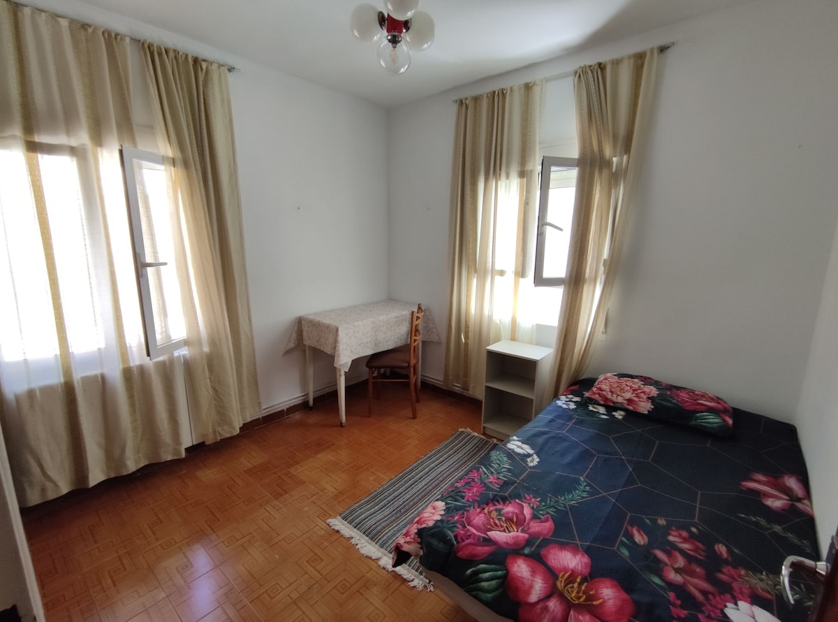 Es un piso amplio, luminoso y compartido . Se encuentra en Guadalajara capital, esta 30min de aeropuerto Barajas. Una habitación grande con armario Balcón solar, Salón, cocina y baño está compartido