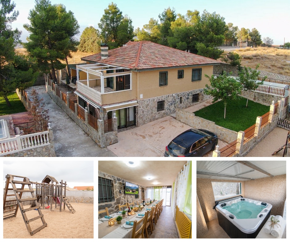 Crea recuerdos inolvidables en este alojamiento único ideal para familias. Una casa rural ,en un pequeño pueblo lleno de historia y con el río Júcar a 3 kilómetros, ideal para desconectar y descansar, una casa con un estilo singular, la casa consta de 6 dormitorios, 3 cuartos de baño y un aseo, cocina completa con lavavajillas y horno, salón comedor y otro de TV y biblioteca ,en nuestro gran patio puedes encontrar una preciosa piscina y el porche con barbacoa y frigorífico u pequeña cocina ext