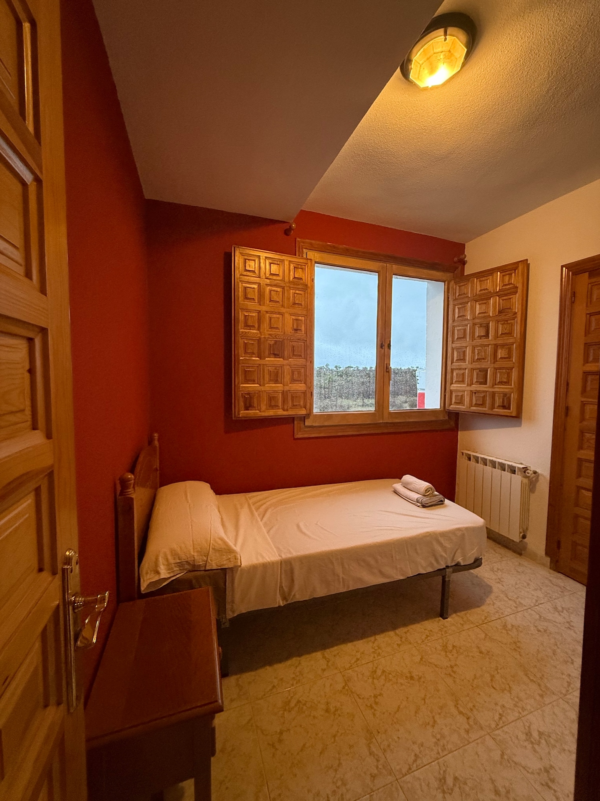 Disfruta de una estancia acogedora en esta habitación con cama de matrimonio y baño privado, ideal para parejas o familias pequeñas. Ofrecemos la posibilidad de añadir una cama supletoria si lo necesitas con un pequeño suplemento. También puedes disfrutar de desayuno, comida y cena en nuestro salón. Ideal para amantes del turismo rural, que buscan desconectar y disfrutar de la belleza natural de Teruel. Cerca del Castillo de Peracense, Albarracín, Calomarde y Bronchales. ¡Ven a visitarnos!