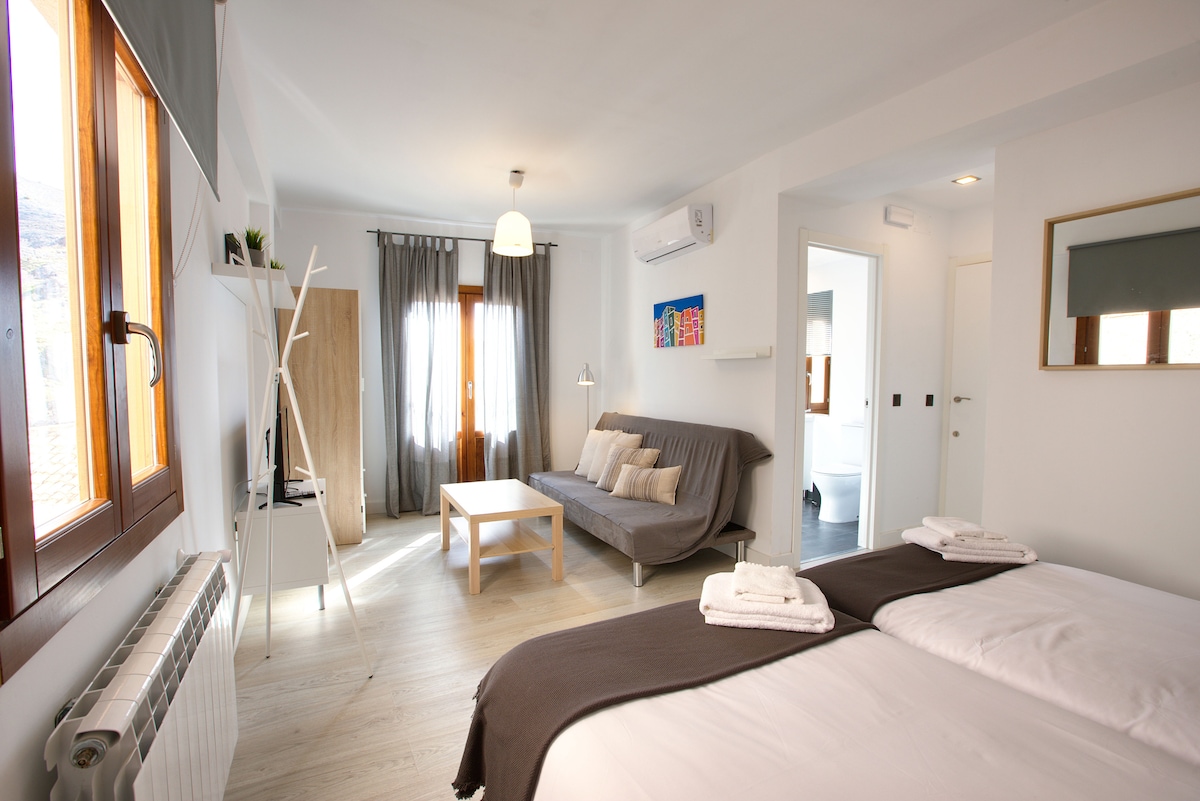Habitación muy luminosa y espaciosa, nueva, doble con baño privado y chimenea situada en la parte baja del casco antiguo de Cuenca. Perfecta ubicación para conocer la ciudad al completo, ya que tiene una excelente conexión para poder disfrutar de la zona de turismo durante el día y de la zona de ocio y gastronomía por la noche. Ideal para conocer la Semana Santa conquense, se pueden ver las procesiones desde sus ventanas. La parada de autobuses que conecta con la estación del AVE está a 200m.