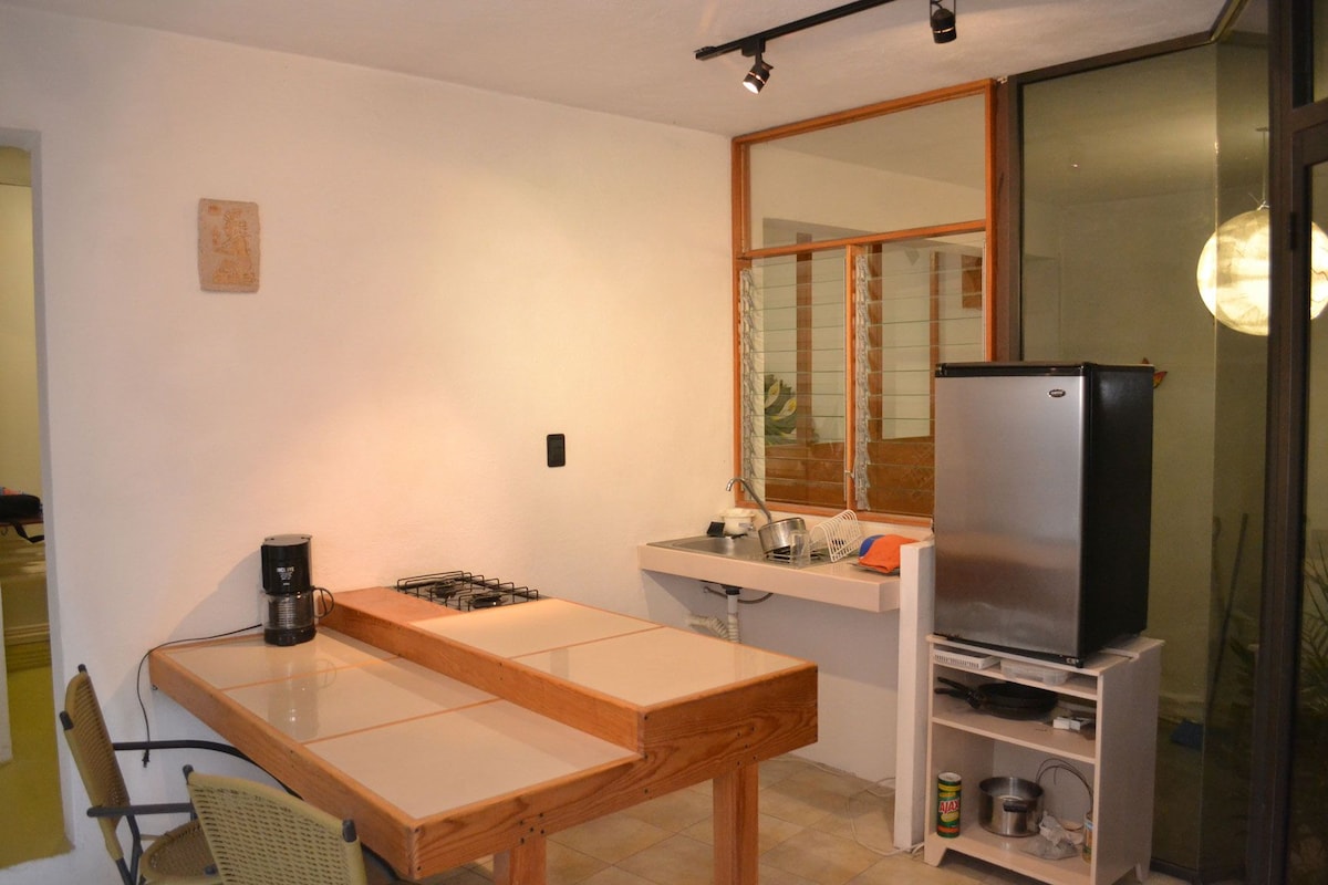 Es un departamento privado, con entrada independiente desde la calle, alberca exclusiva para los huéspedes que renten el departamento, cuenta con cocineta equipada, con facilidades para hacer home office (escritorio, internet de fibra óptica, sillón), tiene en todas las áreas interiores detectores humo. 200 canales de TV. Cuenta también con asador para realizar actividades al aire libre y comidas al carbón, zona arbolada y terraza de mas de 200 metros cuadrados.