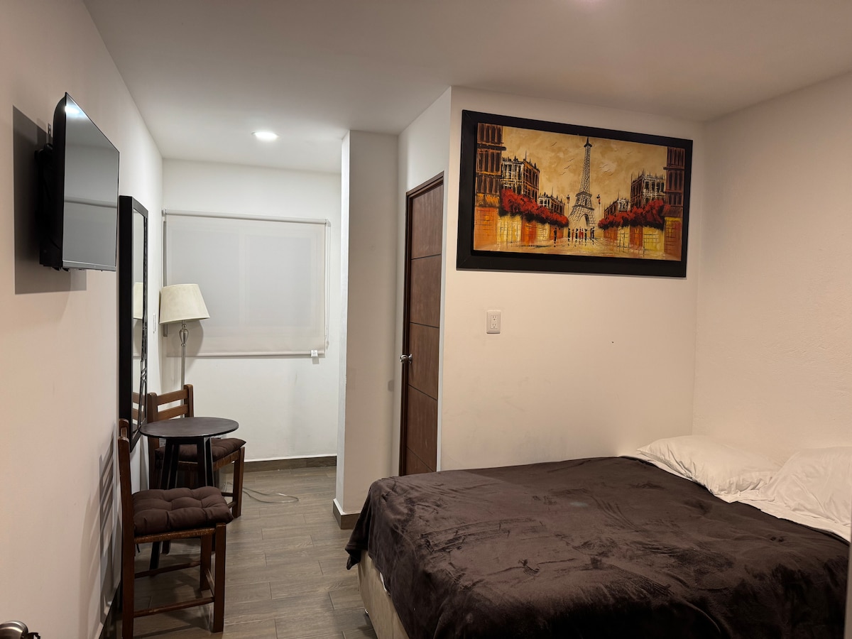 Estupendo loft para parejas te desconectas de todo muy tranquilo y bonito. albercas, Service room en horario de cafetería, pequeño gimnasio, wi fi, totalmente privado, 5to piso con elevador, con todo lo que se requiere en un departamento, donde la tranquilidad se respira en una zona segura y céntrica, cerca de jardines de eventos a una cuadra de las quintas a 5 minutos de la hacienda de Cortes, 7 minutos del centro comercial averanda, 9 minutos del centro.