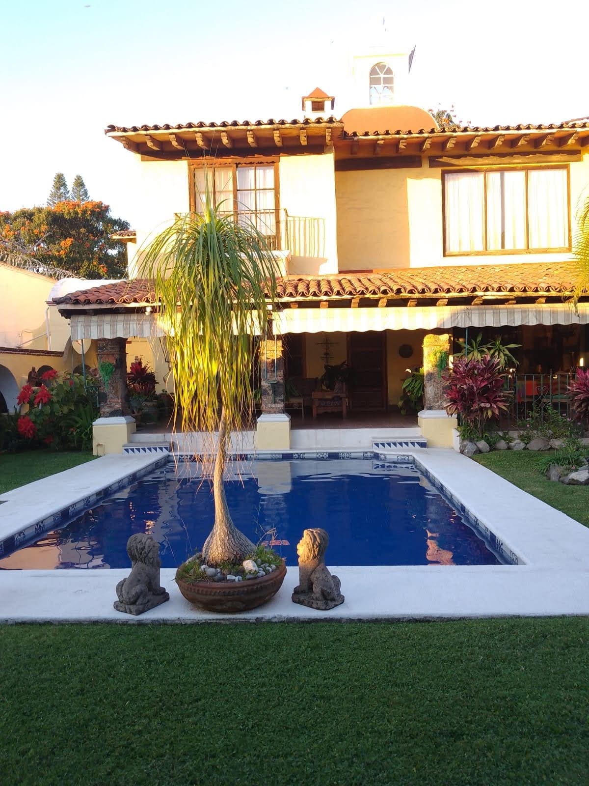 **Magnífica casa al estilo Cuernavaca** rodeada de un amplio y hermoso jardín, con excelente iluminación natural y estacionamiento propio. En el jardín, un majestuoso árbol aporta un toque mágico especialmente por la noche. Disfruta de **alberca privada y climatizada **, jacuzzi y terraza, ideales para pasar un fin de semana inolvidable en familia en el corazón de la Ciudad de la Eterna Primavera. A pocos pasos encontrarás **supermercados y tiendas de conveniencia** para tu comodidad.