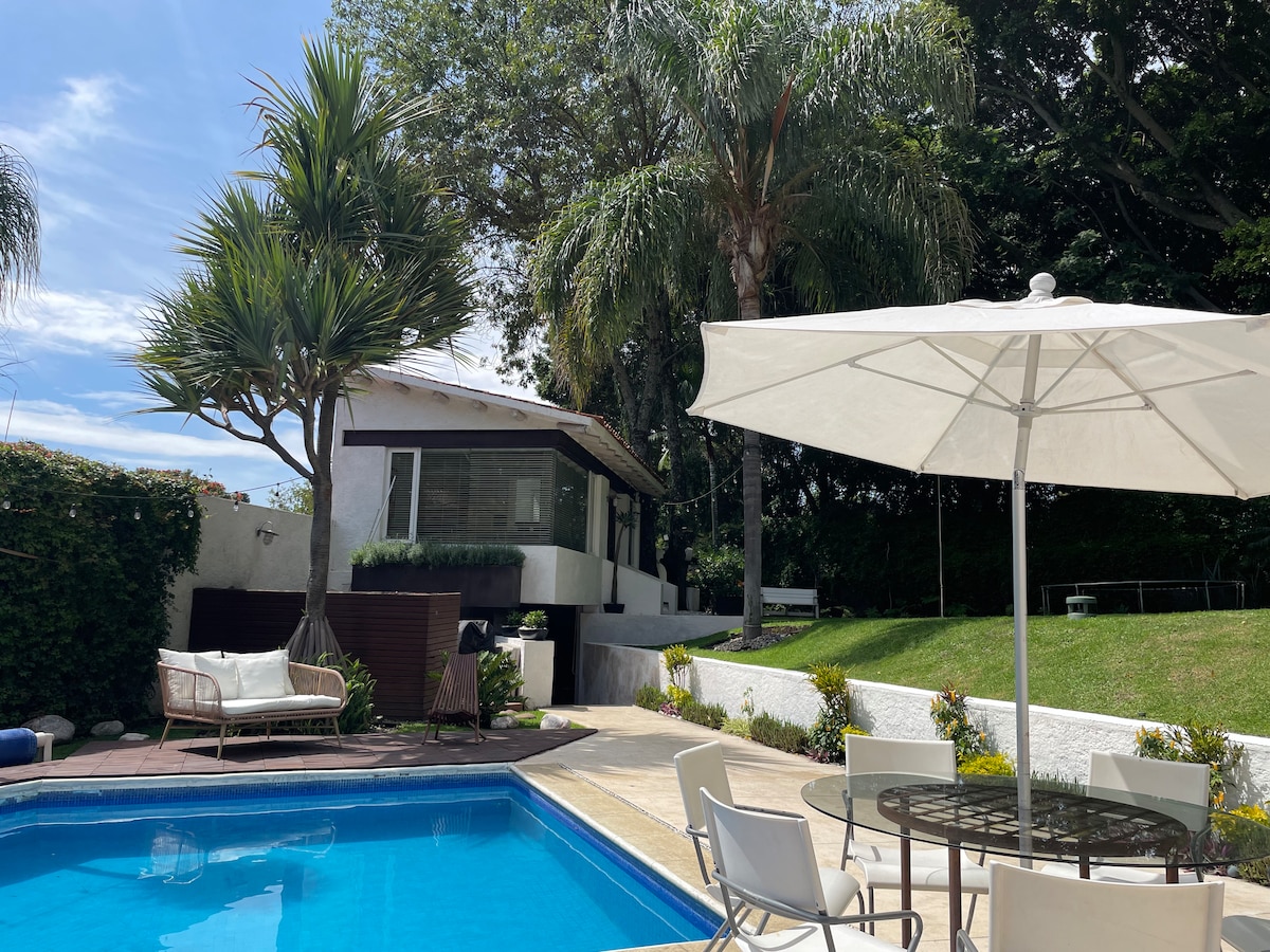 Disfruta del lugar ideal para relajarte con la familia, disfruta de la alberca, el jacuzzi y un jardín de ensueño con arboles gigantes, estaras tan tranquilo que no pensaras en lo cerca que estas de todo, a menos de 5 minutos del centro de Cuernavaca. Aprovecha el fácil acceso desde la CDMX, a pocos minutos de la Catedral, Jardín Borda, y un sin fin de restaurantes para disfrutar. Este departamento en Cuernavaca con estilo moderno es el lugar ideal para hospedarte y disfrutar sus amenidades.