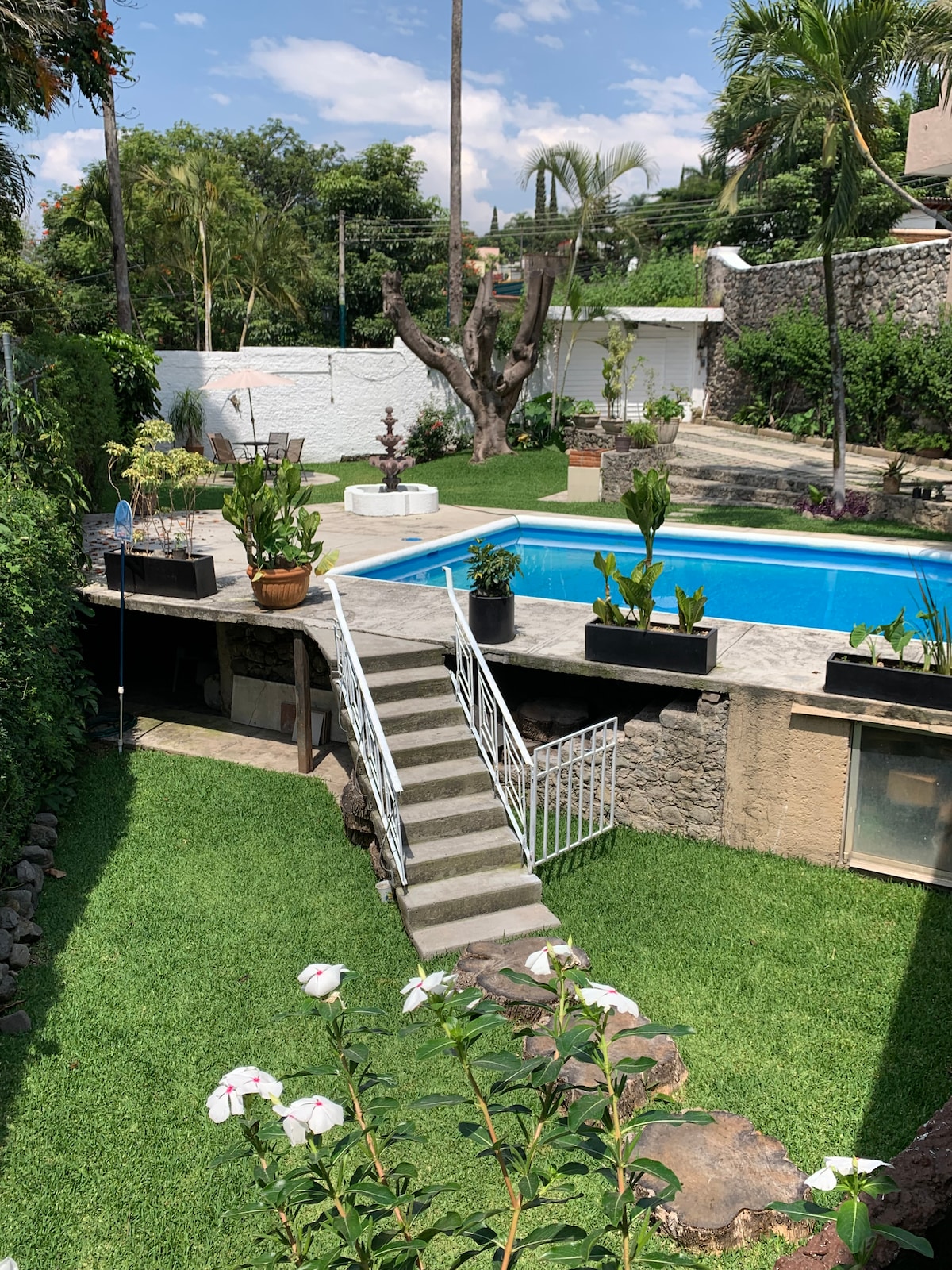 Bungalow independiente con 2 recamaras, internet, cocina equipada y estancia apartado de la casa principal con uso exclusivo de areas verdes, alberca (sin calefacción) y terraza abierta con chimenea y asador, entrada separada... ideal para descansar o hacer home office, multiples arboles frutales y plantas, dentro de un fraccionamiento cerrado con seguridad privada, al norte de Cuernavaca, cercano a super y centro comercial, sin duda un lugar con su magia particular rodeado de árboles.