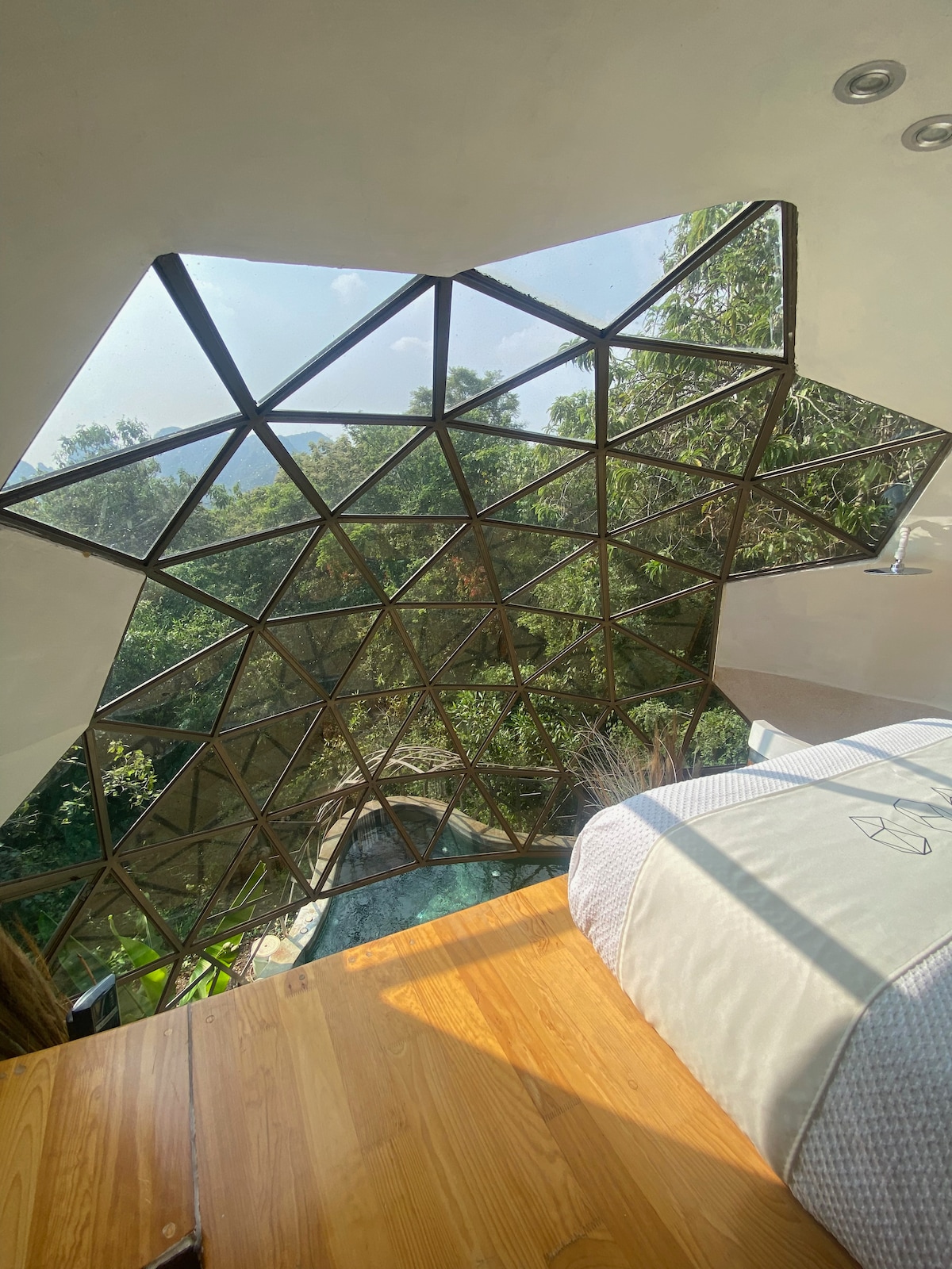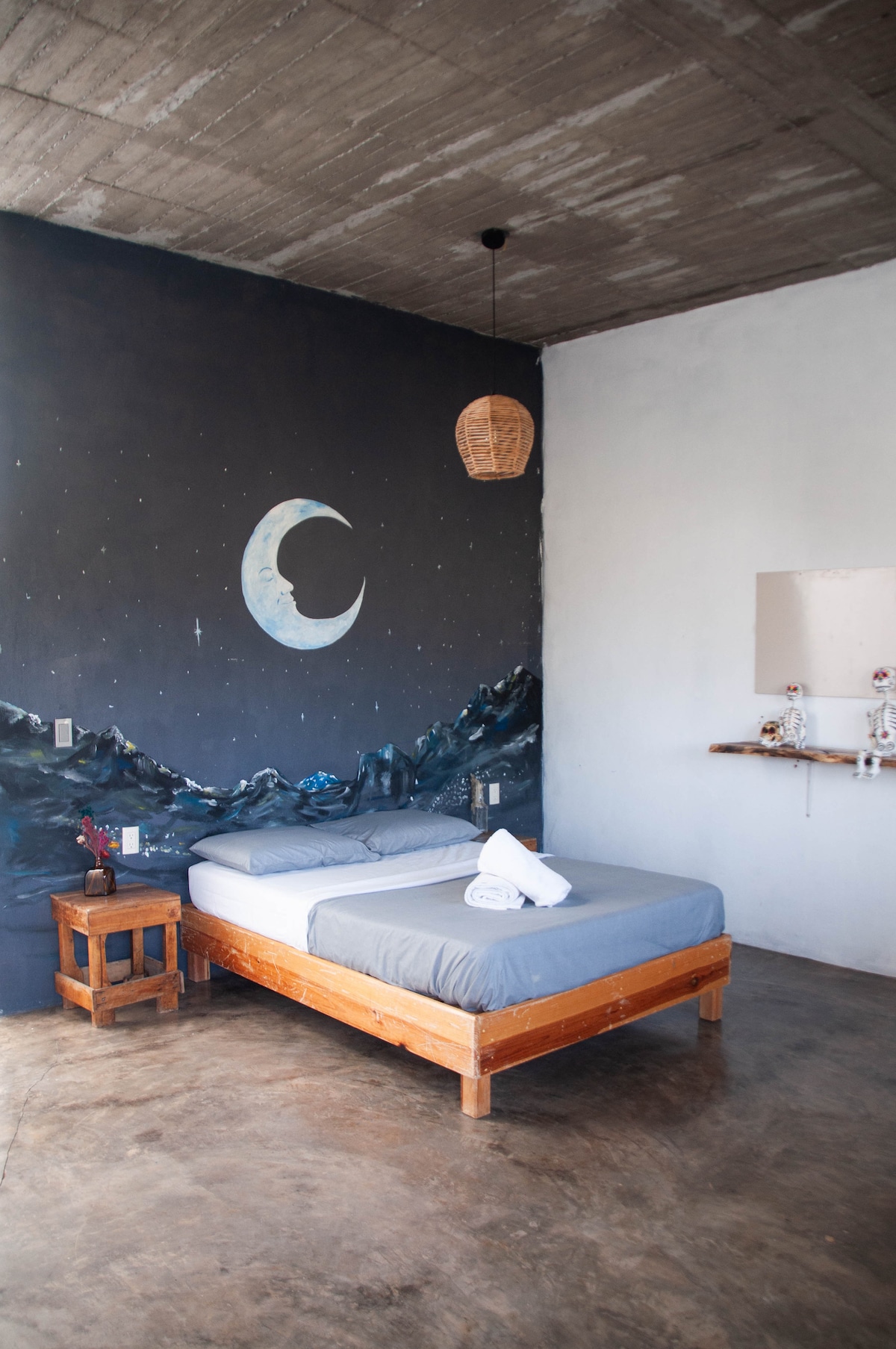 Loft de Origen hace honor a su nombre por estar construido con adobes fabricados en sitio con las técnicas ancestrales y con la misma tierra del lugar donde se encuentra. El espacio tiene doble altura y techos con vigas de madera. Vivir y dormir en un espacio hecho de tierra natural te acoge y armoniza con tu propio origen. Despierta con la caricia del sol de la mañana entrando por el jardín y disfruta el atardecer mirando al pueblo de noche por el gran ojo de la recamara en el mezzanine.
