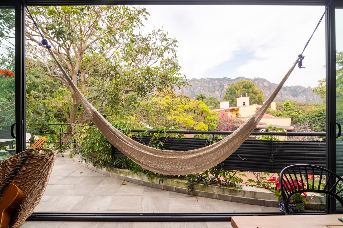 Tepoztlán está muy cerca de la CDMX, y de Cuernavaca. Hay un convento del siglo XVI. Un Mercado, restaurantes, tiendas, Ahora no se pueden hacer paseos en la montaña, se está recuperando tras varios incendios. Para pasear está la pirámide, y los Venaditos. La casa está en un Barrio original, local, y amigable. A 10 minutos a pie del centro. El ambiente es familiar y casual. Con un jardín lleno de flores de colores, y una refrescante piscina. El Loft tiene una Terraza privada y linda vista.