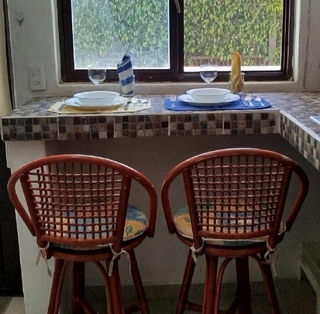 Fully equipped private and cozy Bungalow, 1 bed, Kitchenette, Bathroom, Hot Tub. Garden, Terrace and Swimming Pool can be used. Bungalow privado super equipado, 1 cama, Cocineta equipada, Baño Completo, Tina de Hidromasaje. Uso Jardin, Palapa y Alberca. Cocina exterior con lo básico para cocinar, sal, aceite, azúcar, pimienta etc.