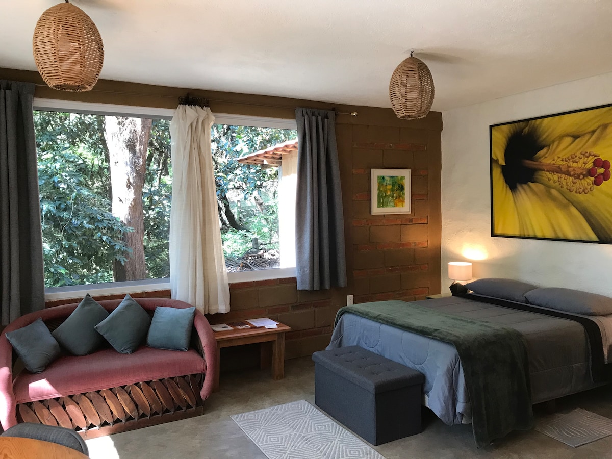 🛏 Spacious bedroom with a king-size bed for ultimate comfort ❄️ Air conditioning to keep you cool on warm days 🌿 Private patio – your own little outdoor oasis 🛍 Great location, just minutes from shopping centers, restaurants, banks, a casino, and public transportation Whether you're here for a weekend escape, a romantic retreat, or business, you'll feel right at home. Book your stay today and experience the charm of Cuernavaca in comfort and style.