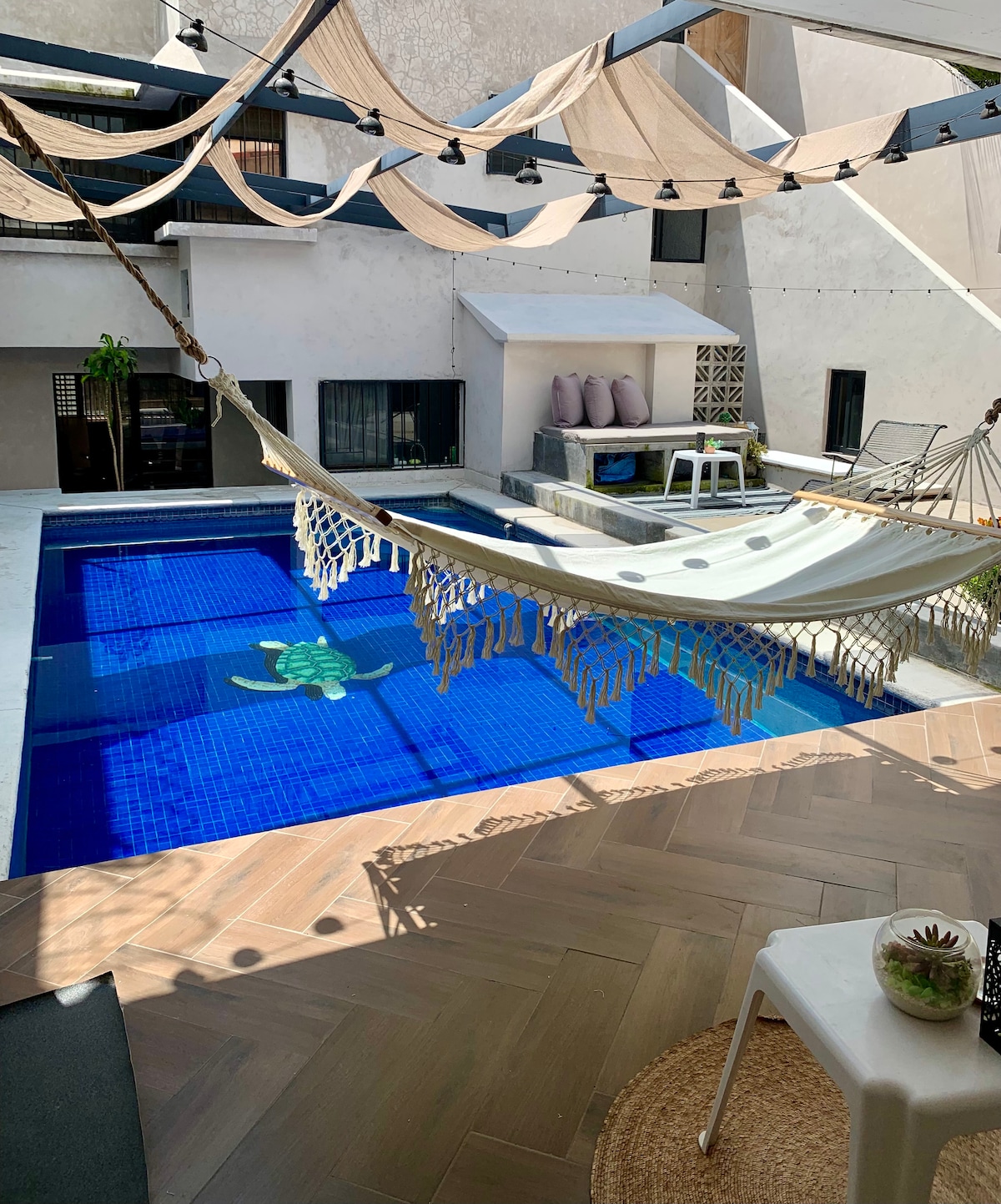 Un verdadero Oasis escondido en un fraccionamiento muy seguro cerca de la autopista y centros comerciales. Aquí estarás en Paz y en Armonía con tu Familia. El jardín, alberca y el jacuzzi son de tu USO EXCLUSIVO. Habitaciones muy limpias, amplias, con muchas amenidades y fina ropa de cama. Cuentan con escritorios para el "home office". Amplio comedor, sala, cocina, y mesa de juegos con todo lo que necesites... y también somos Anfitriones "Pet Friendly"