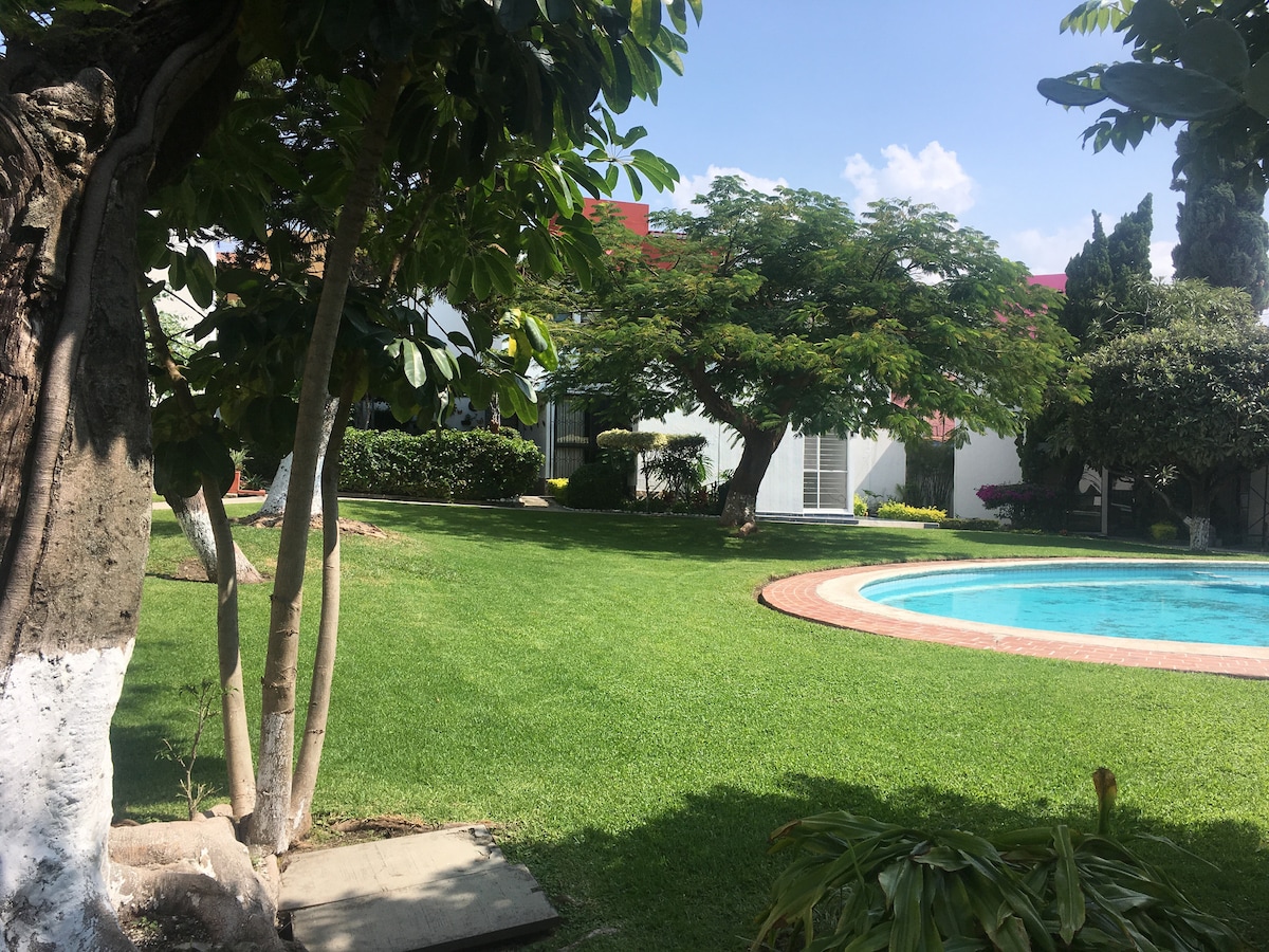 Escapa del frío. Nuestra casa totalmente Pet Friendly para un buen fin de semana con piscina. Nos encontramos a 25 minutos del pueblo mágico de Tepoztlan y 30 de oaxtepec. El lugar es muy tranquilo y la casa así como el jardín son muy amplios. La propiedad es totalmente privada,no se comparte la alberca, la casa ni el estacionamiento.