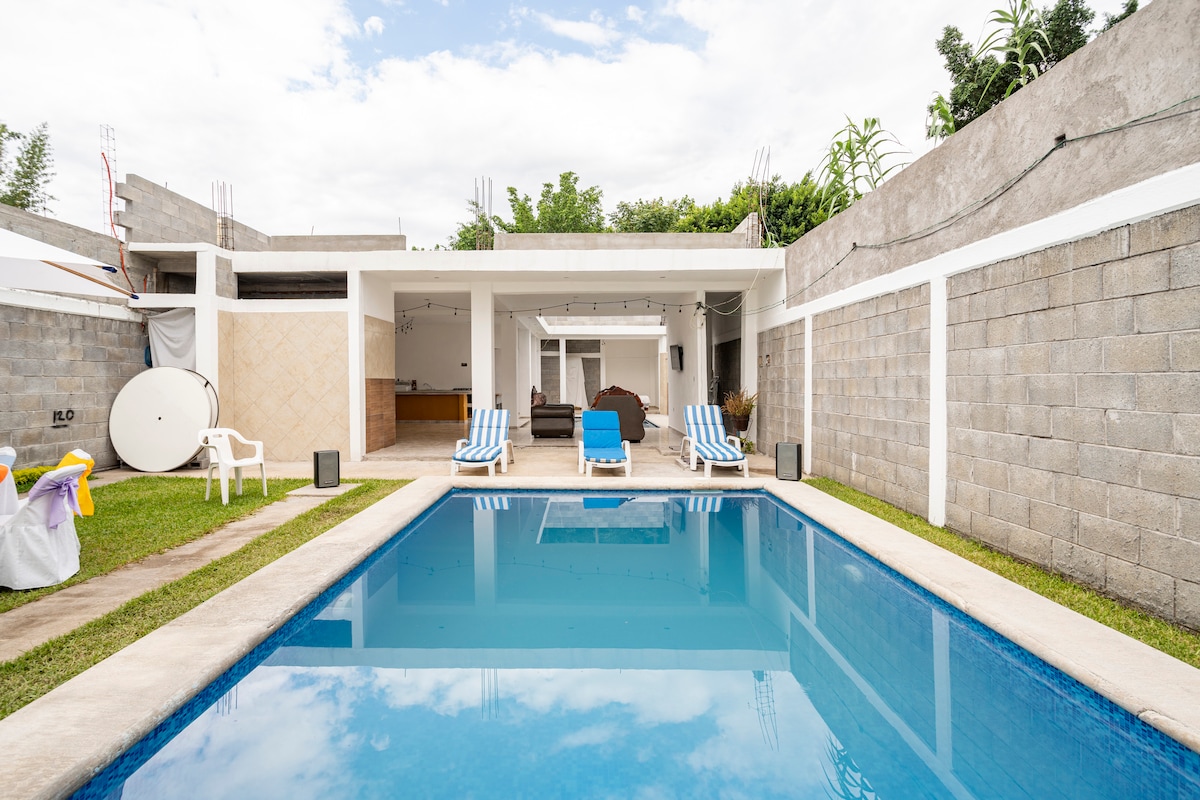 ¡Escápate de la rutina! Mi casa es tu casa. Diviértete en la alberca. Hasta para 8 personas sin costo extra en Emiliano Zapata. El Fracc es seguro y tranquilo. Entrada y salida flexible. Disfruta en los muebles del exterior y una carne asada en el jardin. Estarás conectado con amplitud de Wifi y tv paga. Cómodas estancias y cocina equipada, espacios para trabajar, ventiladores, un estacionamiento propio y de visitas. Canchas y juegos infantiles. Conoce la zona comercial y zonas turísticas.