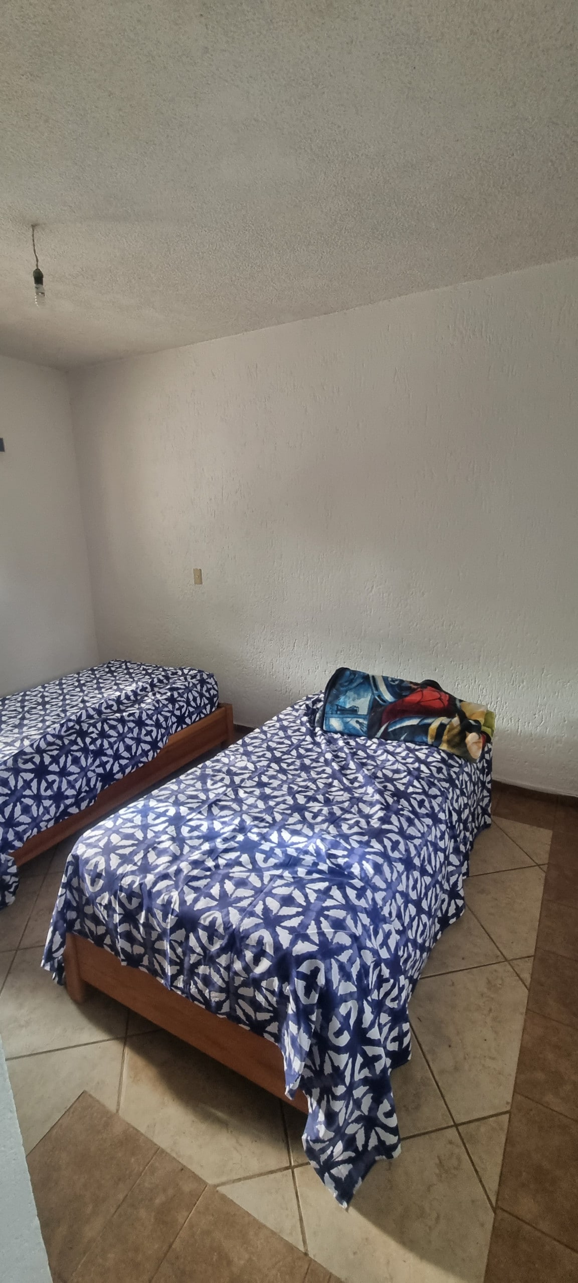 Casa privada con alberca. Cocina con horno de microondas, estufa sin limite de gas, refrigerador, comedor para 6 personas Sala, con televisor wi-fi, cable Habitacion-cama King size con cómoda 1 Habitacion-2 camas matrimoniales, y cómoda Baño con boiler automático, 3 toallas personales, 1 facial, jabón de barra y estropajo para cuerpo Área de lavado Patio con jardín, asador Estacionamiento privado para 2 autos