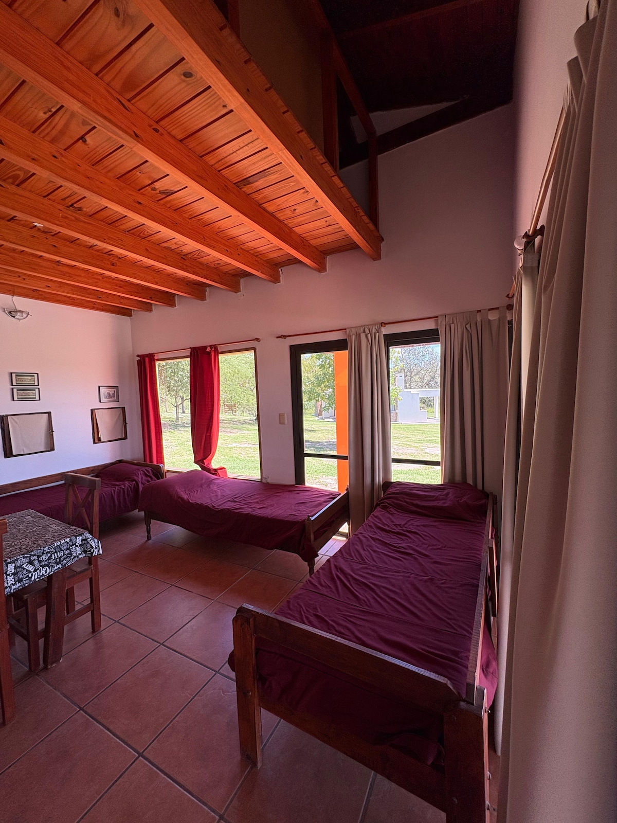 Relajate en este alojamiento único y tranquilo, aislado del ruido a metros del arroyo Los Chorrillos con imponente puesta de sol y distante de las casas vecinas pero a 5 minutos del centro turístico y teatral de la villa, pasando por el famoso reloj Cucú, el puente Uruguay y el casino. Nuestra casa está compuesta por cuatro dormitorios, tres baños, uno en suite, living comedor, cocina, balcon con vista a los gigantes, hogar a leña y calefactores, piscina, aire acondicionado y ventiladores.