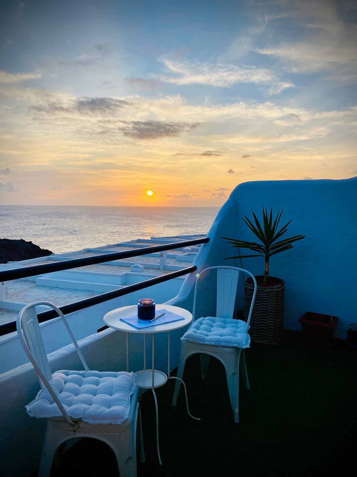 Un precioso apartamento de diseño, recientemente renovado con con impresionantes vistas de atardecer sobre el Océano desde su terraza. Primera línea al mar. Después de un largo día en la naturaleza, descansa en la cama King size (180x200cm) ----- A lovely apartment recently renovated with stunning views of the sunset, first line over the ocean from the terrace. Relax while reading, eating, or doing yoga. After a long day in nature, rest on the King size bed (180x200cm)