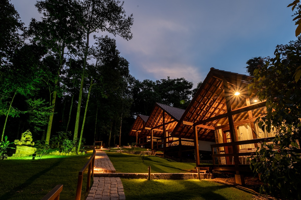 Situada numa reserva particular, cercada pelo Parque Nacional da Chapada, é um espaço para imersão consigo mesmo e a natureza. O chalé foi projetada para um casal ou 3 pessoas. O espaço é destinado a contemplação, meditação, reencontro com a natureza, trilhas ecológicas numa reserva de 4ha, observação de aves e fauna e férias românticas. Vale a pena ressaltar que os espaços comuns são partilhados com 3 outros chalés. Crianças a partir de 10 anos são bem vindos.