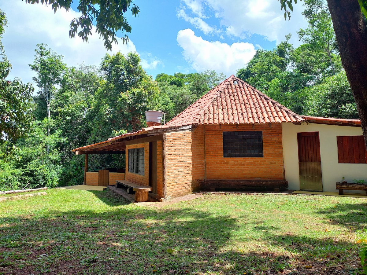 Casa no meio do mato com cozinha interna com fogão a gás e uma cozinha externa com fogão a lenha. Lareira na sala e banheiro . Devem trazer a própria roupa de cama e toalha de banho. Proibido ligar som de aparelhos sonoros. Não disponibilizamos de serviços de limpeza