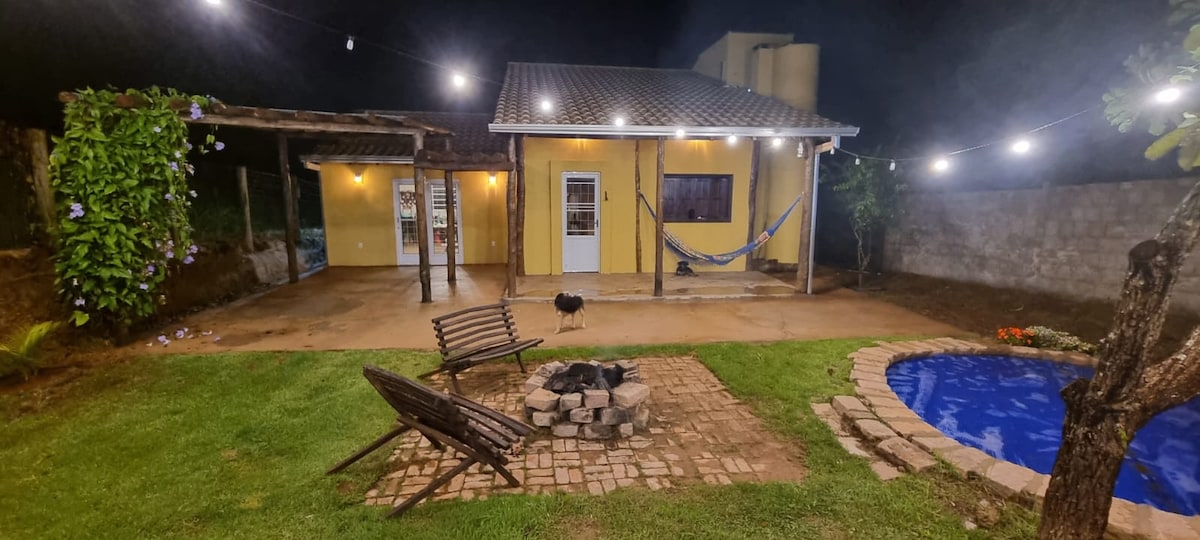 Discover the perfect retreat in Chapada dos Guimarães. Spacious home, 700m from the square, 4 bedrooms, suite, keys, and tour. Enjoy wine on cold nights or outdoor barbecues. Fruitful garden, vast lawn, perfect for soccer and children’s fun. Book and live nature! The garden is a show in itself: fruit within reach, space for children to explore, and an ideal lawn for soccer. Experience nature, celebrate with friends, and let children create adventures.