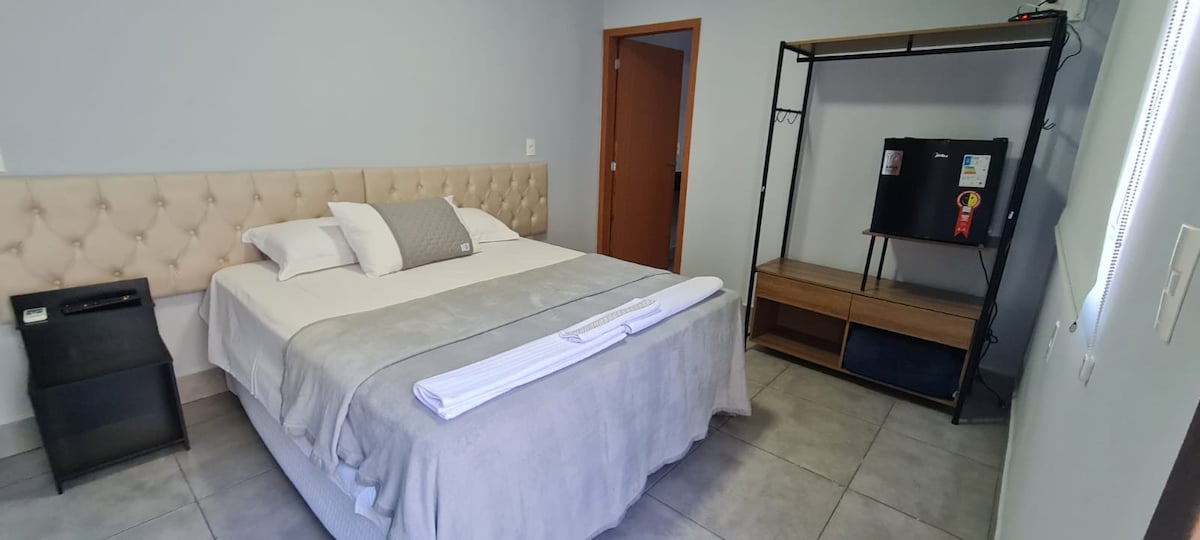 Suíte nova e bem localizada. Todo equipado com móveis de bom gosto que tornam o espaço aconchegante. Bairro seguro, tranquilo e bem localizado. Próximo dos principais pontos de Cuiabá.