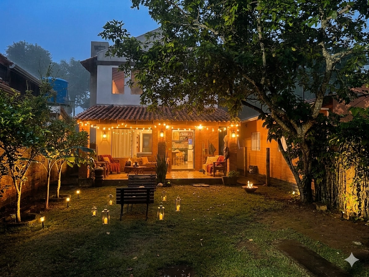 Discover the perfect retreat in Chapada dos Guimarães. Spacious home, 700m from the square, 4 bedrooms, suite, keys, and tour. Enjoy wine on cold nights or outdoor barbecues. Fruitful garden, vast lawn, perfect for soccer and children’s fun. Book and live nature! The garden is a show in itself: fruit within reach, space for children to explore, and an ideal lawn for soccer. Experience nature, celebrate with friends, and let children create adventures.
