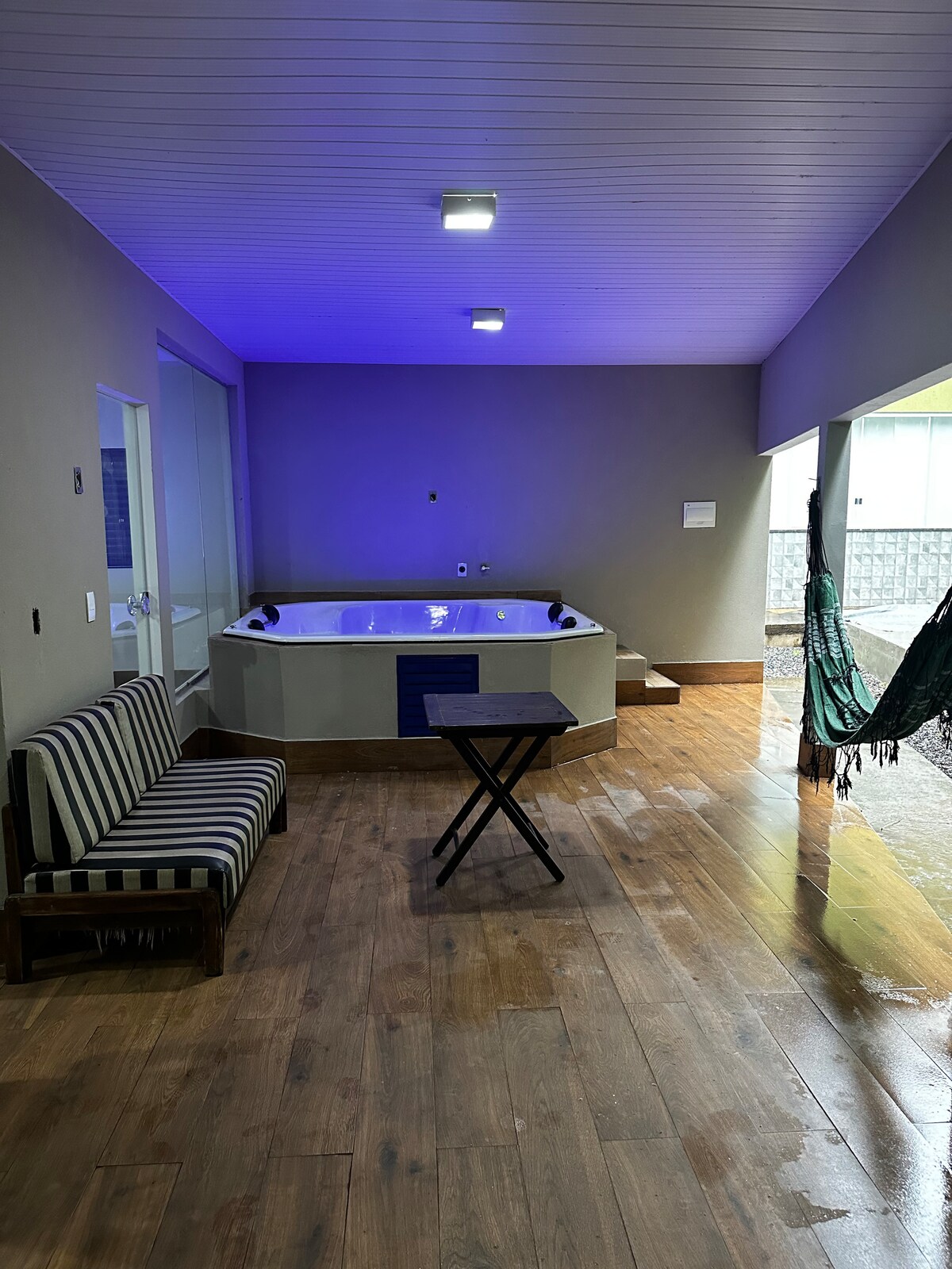 Descubra o refúgio perfeito em nossa cabana rústica, cuidadosamente projetada para oferecer segurança, conforto e uma experiência de relaxamento única. Além de sua decoração encantadora em madeira e vidro, que traz o charme do rústico sem abrir mão da sofisticação, a cabana conta com uma banheira de hidromassagem equipada com cromoterapia. Aproveite para relaxar enquanto as luzes terapêuticas proporcionam bem-estar, revitalizando corpo e mente após um dia de aventuras ou descanso.